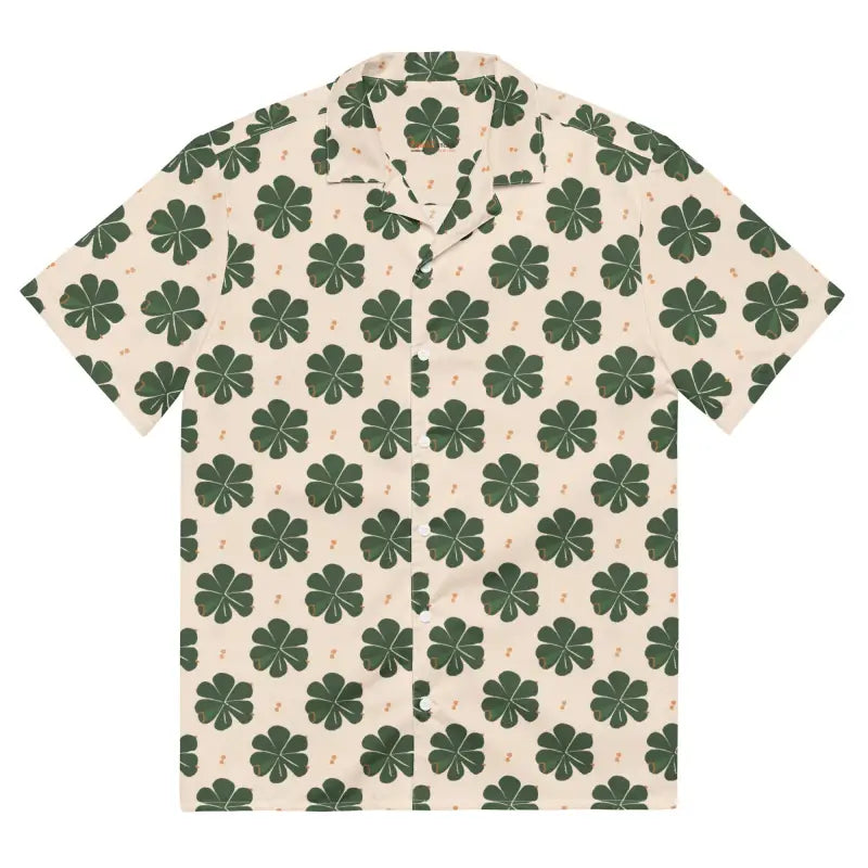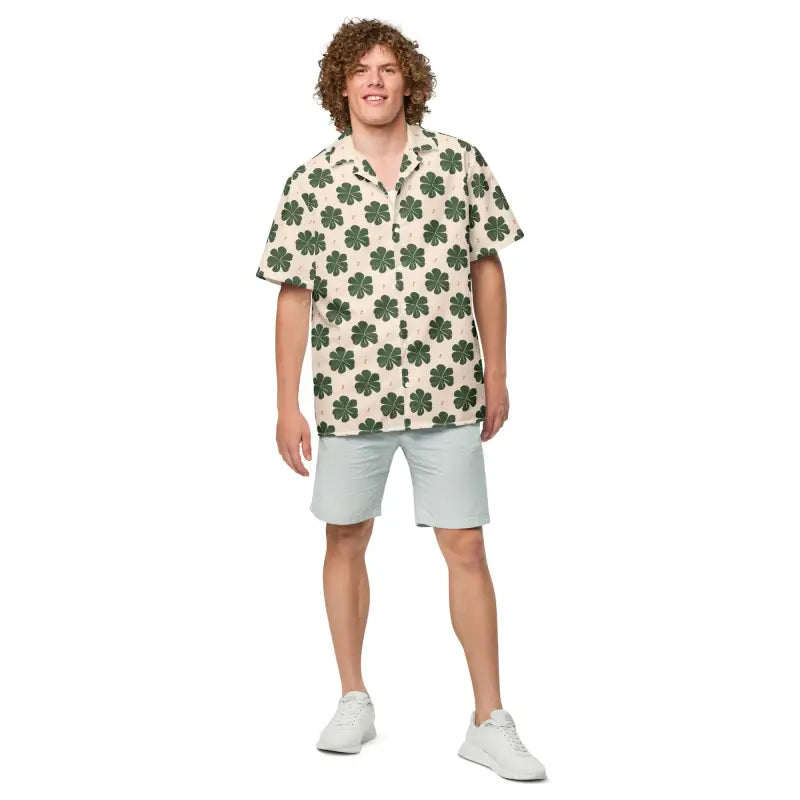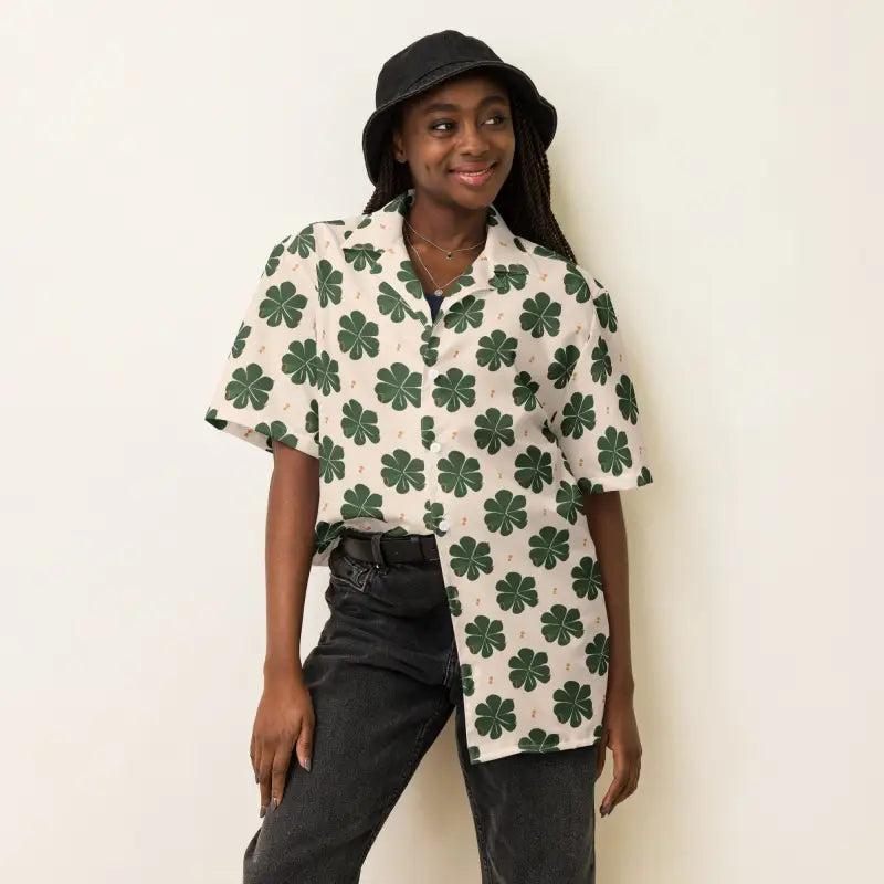 - Celebrate in eco-conscious style with this eye-catching clover leaf unisex button shirt