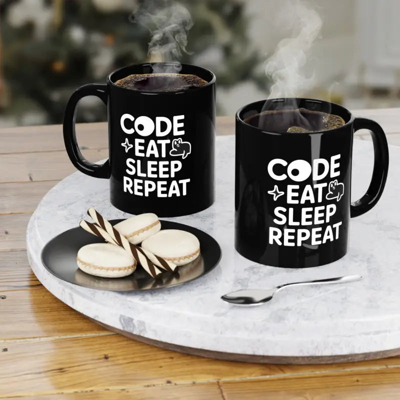 Take your place as the unstoppable coder you are. This isn’t just another mug—it’s your daily motivator, style statement, and trusty sidekick in the world of Eat Sleep Code. Don’t miss out on owning the coffee mug that does more than just hold your drink; it puts your coding passion on display and helps you power through the day. Grab yours now and make every morning a fresh start to Eat, Sleep, Code, and Repeat!