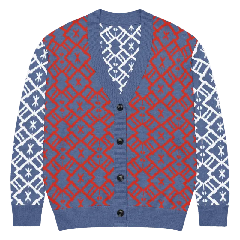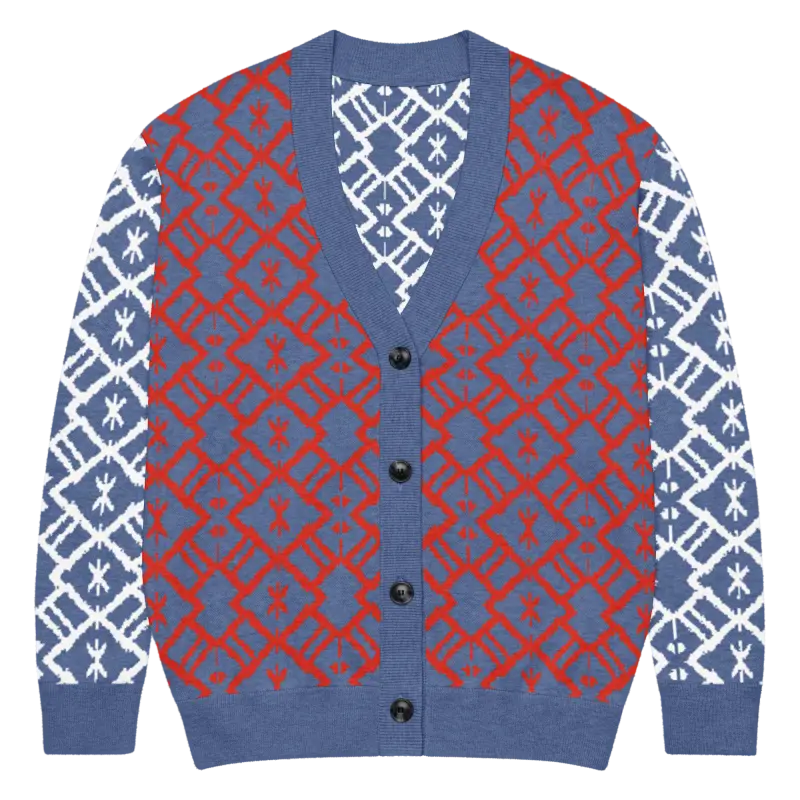This isn't just another cardigan hanging in your closet. The soft knitted fabric feels like a warm hug against your skin while the jacquard knit technique creates gorgeous texture that catches the light beautifully. Every time you slip it on, you'll discover new details in the intricate patterns that make this burgundy blue patterned masterpiece truly special. The relaxed unisex fit means it drapes elegantly without clinging, giving you that effortlessly cool look whether you're running errands or meeting friends for coffee.