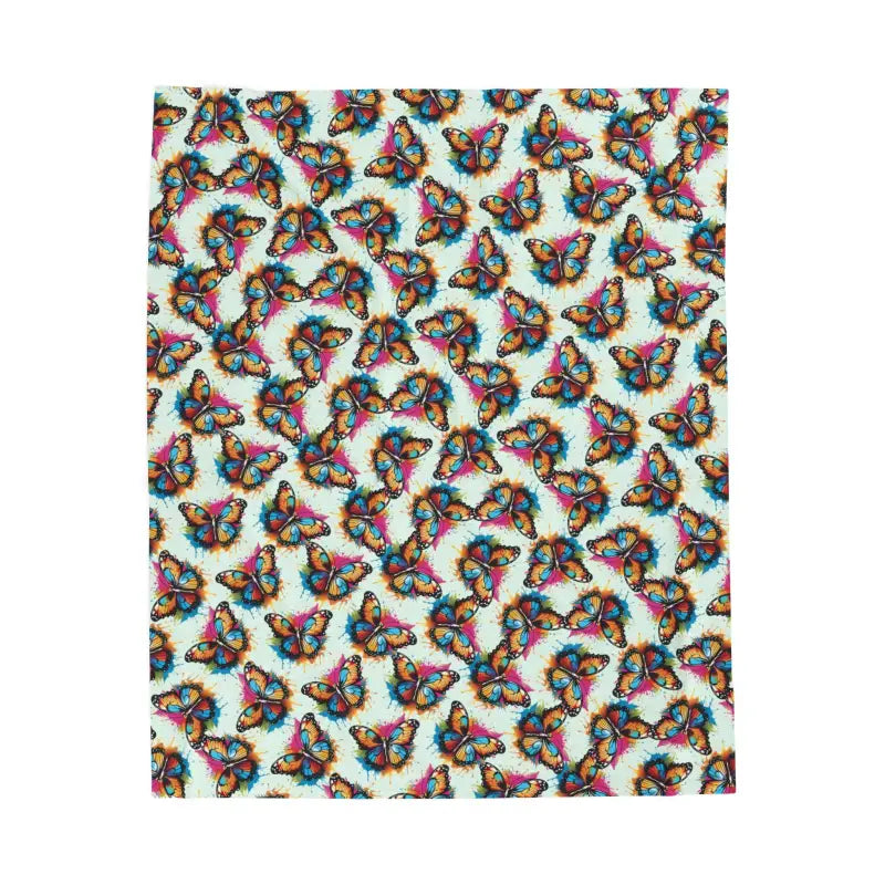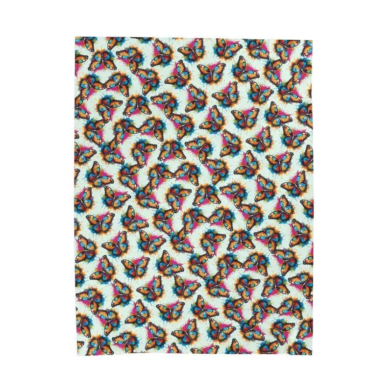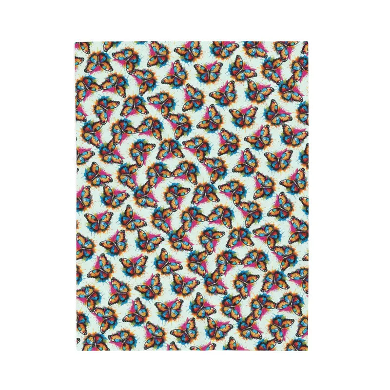 Wrap yourself in a slow, gentle moment with this velveteen plush blanket. Butterflies float across the surface in playful, colorful detail — like a quiet garden settling onto your lap. The fabric catches the light and holds warmth, turning a chilly evening into something softly bright. It settles easily on a sofa or over knees by the window while you read, sketch, or sip a late cup of tea. Made for grownups who appreciate tactile comfort and subtle, whimsical patterning, this blanket brings a calm, homey pause to housewarmings, chilly mornings, and bedside layering. Expect richly saturated color on one side and a plush, cozy face that invites lingering.