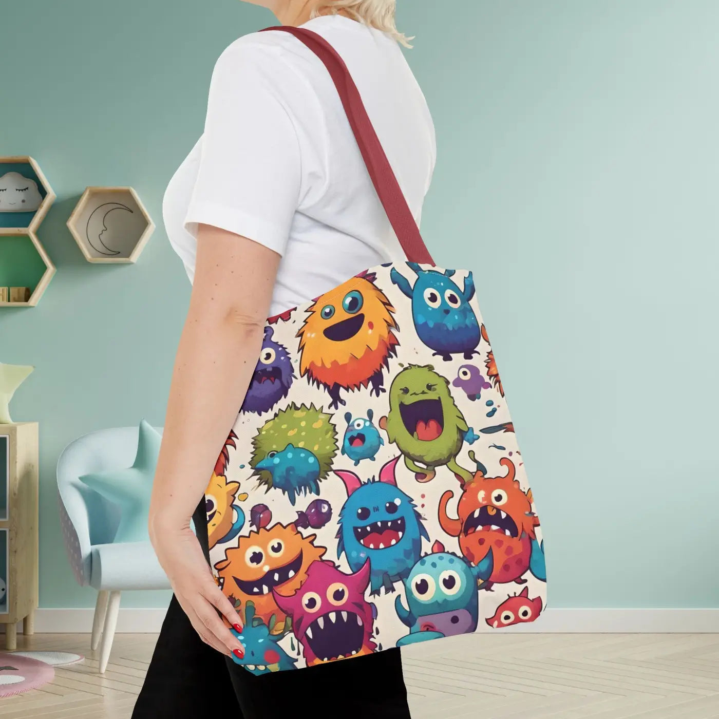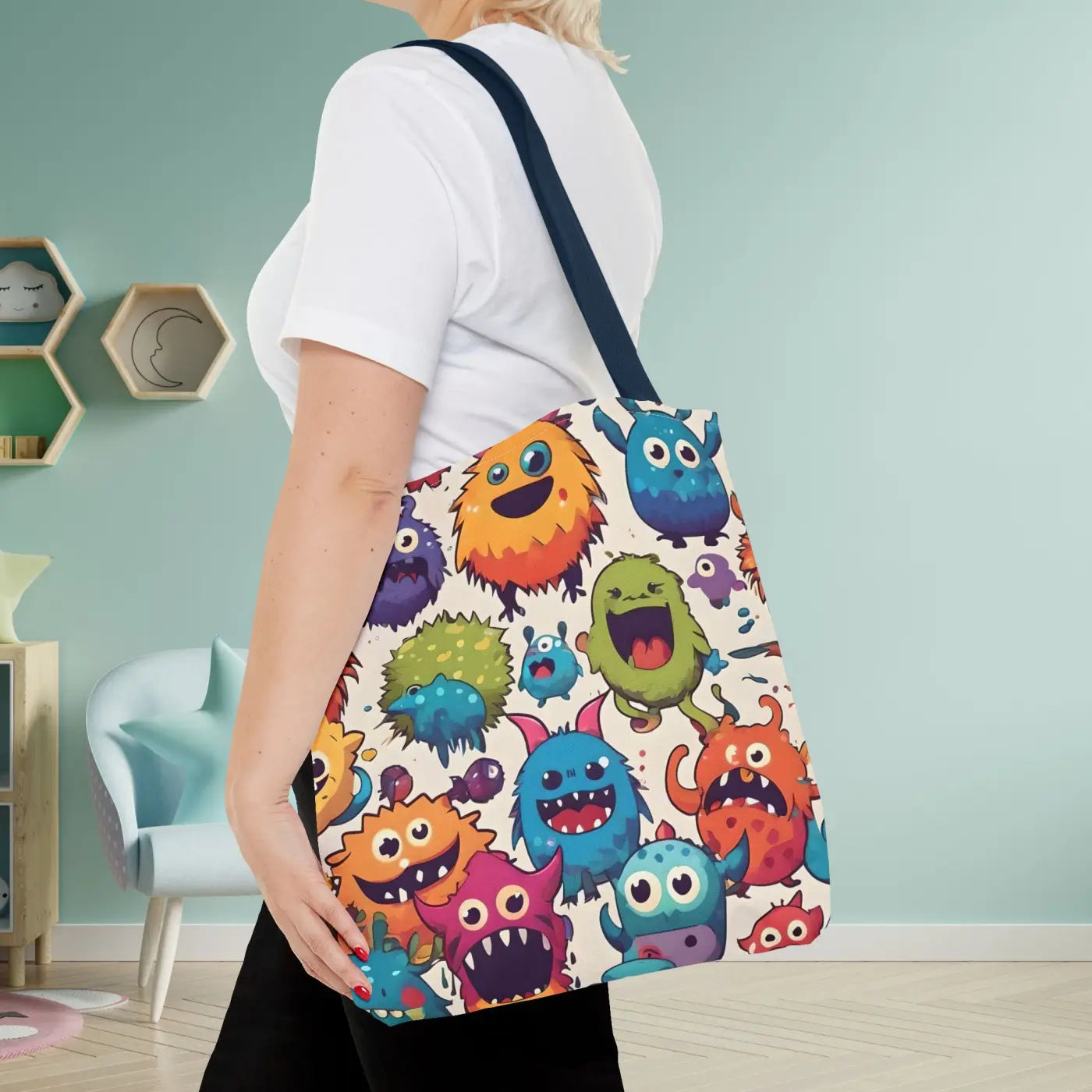 Step up your accessory game and bring some fun to your everyday style. This colorful cute monsters tote bag makes your trendy outfits stand out and promises reliable carry and long-lasting flair. Add a pop of playful fashion to your collection now!