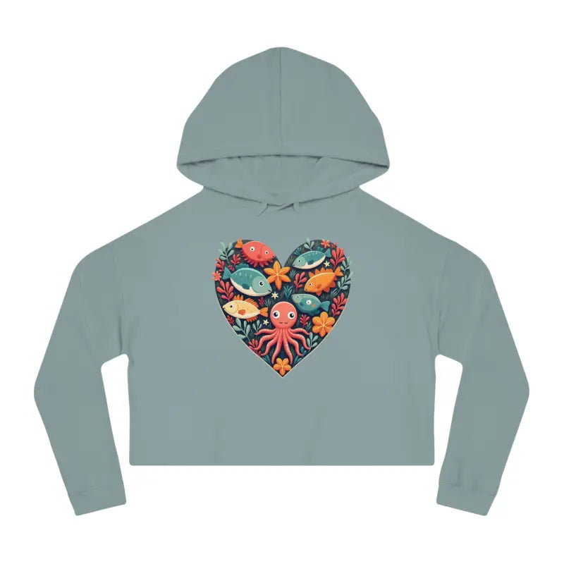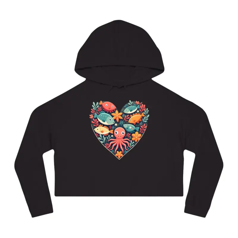 Wake up your wardrobe with a playful splash of colorful heart fishes on this fishes cropped hoodie that wraps you in modern lifestyle essentials and beachy breeze confidence
