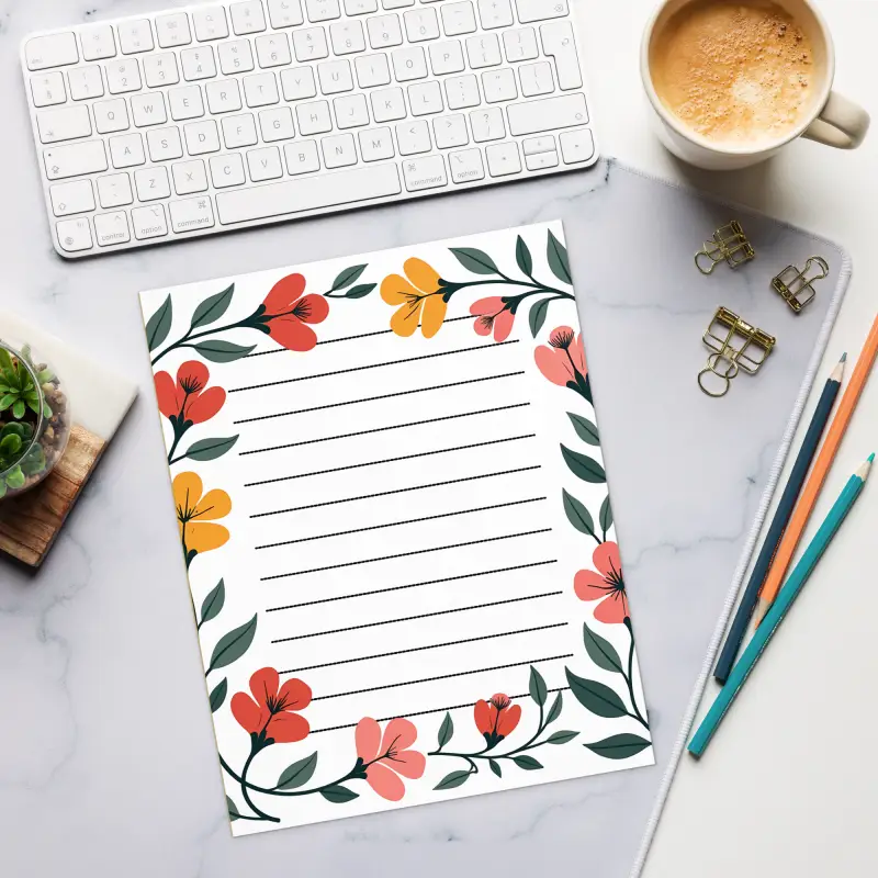Don’t settle for ordinary—grab this floral border notepad now and let its vibrant, eye-catching design spark creativity in every note you take. Your ideas deserve a stylish home!