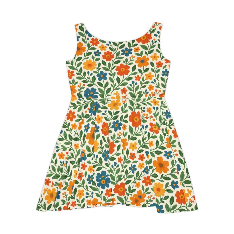 - Stunning women’s skater dress style with a colorful floral print perfect for festivals, brunches, or beach days.