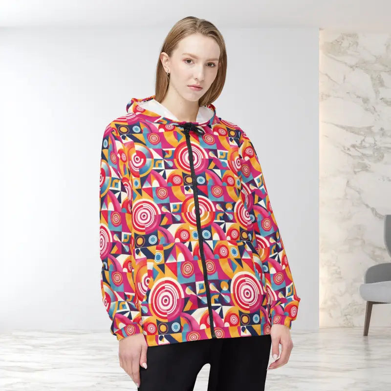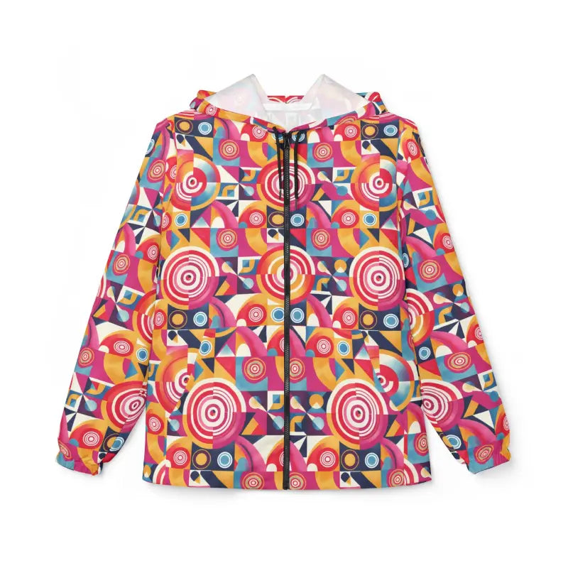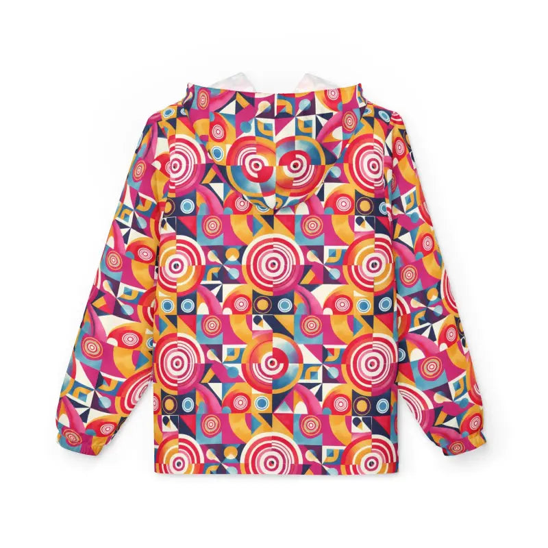 Colorful Geometric Windbreaker Jacket – Retro Pop Art Circles AOP