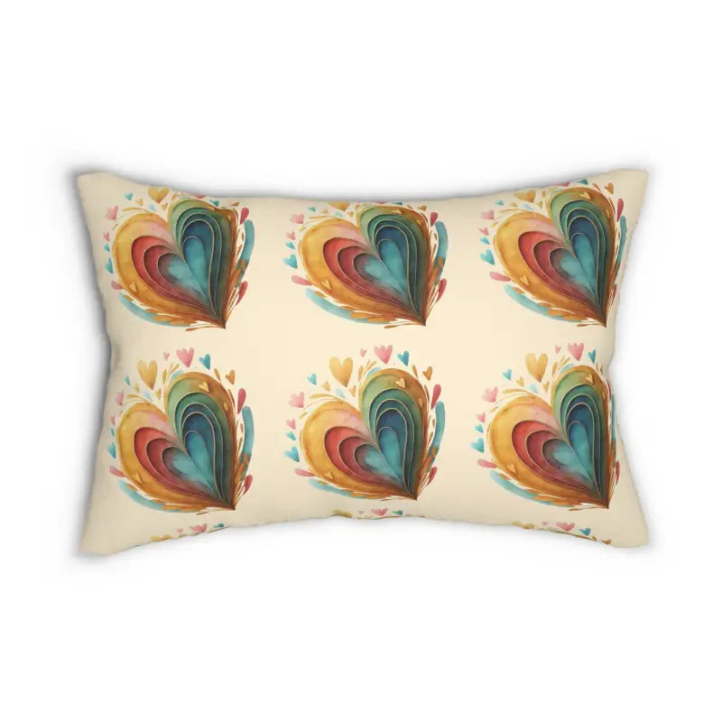 Feel the cozy hug of a spun polyester lumbar pillow that brightens every corner with a burst of Colorful Hearts throw pillow energy. Imagine sinking into soft support as vibrant hearts dance across your couch on lazy Sunday afternoons.