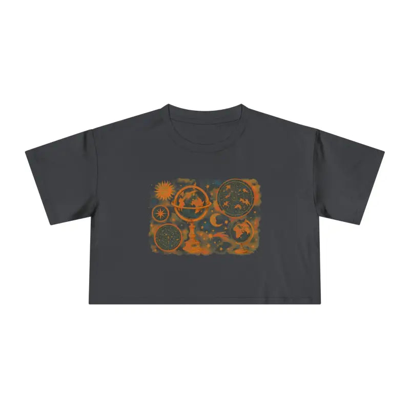 • Thoughtful stitch work and reinforced seams deliver durability, so this cosmic crop tee becomes your go-to day after day