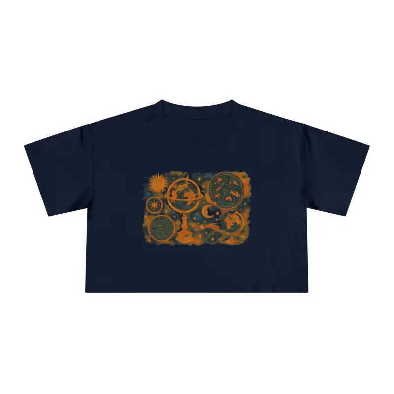 Feel the beat of the universe in this playful women’s crop tee as stars swirl across your skin, pulsing with cosmic vibes that transport you straight to a rooftop festival under the Milky Way. Slip into this soft crop tee and imagine the music, the lights, the energy all around you.