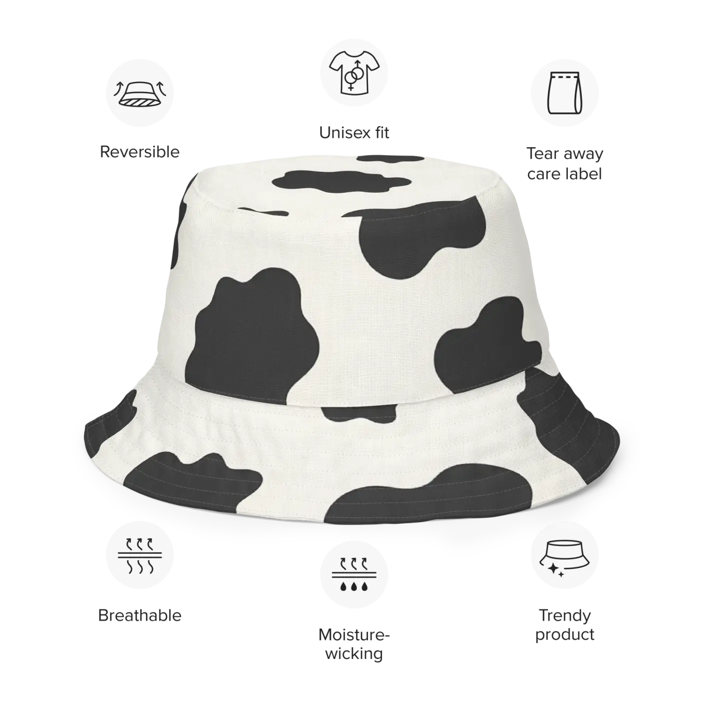 Inspired by nature and modern street culture, this cow print reversible bucket combines playful patterns with a soft, breathable feel that keeps you comfy all day. Whether you’re hitting the city streets or chillin' in the park, this reversible bucket is your go-to for fresh, eco-friendly fashion that feels as good as it looks.