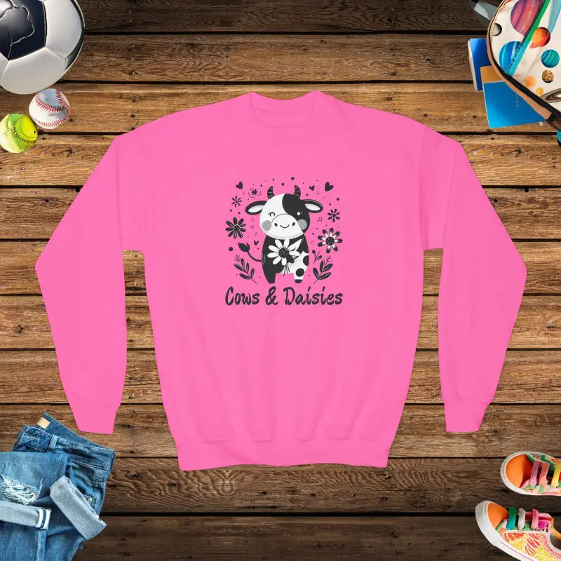 Wrap it all up in a bundle of colorful joy with the Cows & Daisies Youth Crewneck. Whether your little one is strutting down school hallways or swinging through playground adventures, they'll love sporting something so comfy and cute. Don't miss out on giving your child a piece of clothing that promises to deliver both happiness and style in spades. Let them explore their world with this unique, cheerful sweatshirt that ticks all the right boxes. Are you ready to see your child's face light up with excitement? Grab one today and elevate their fashion game!