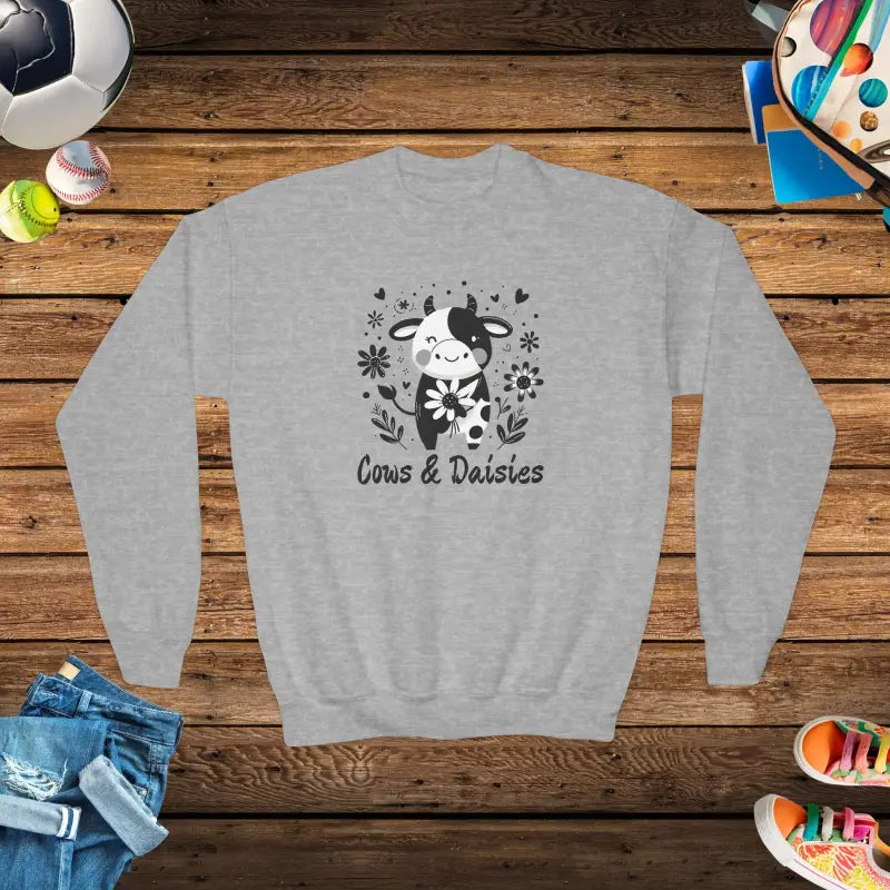 Introducing your child's next favorite wardrobe staple, the Cows & Daisies Youth Crewneck. This stylish comfort piece is designed specifically for kids who crave a mix of fun flair and cozy feels. Imagine a sweatshirt that wraps your little one in a gentle embrace while letting them make a standout fashion statement. That's exactly what this crewneck brings to the table with its playful cow design embellished with vibrant daisy accents. Each wear promises to bring smiles and draw attention everywhere they go.