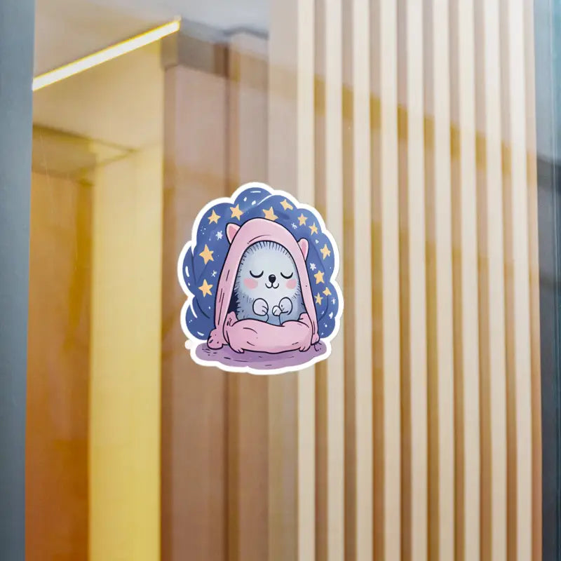 Print: High-quality cozy hedgehog vinyl design featuring vibrant colors and a satin finish that brings whimsical magic to smooth surfaces and keeps your style fresh.