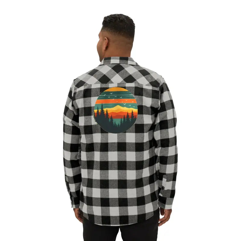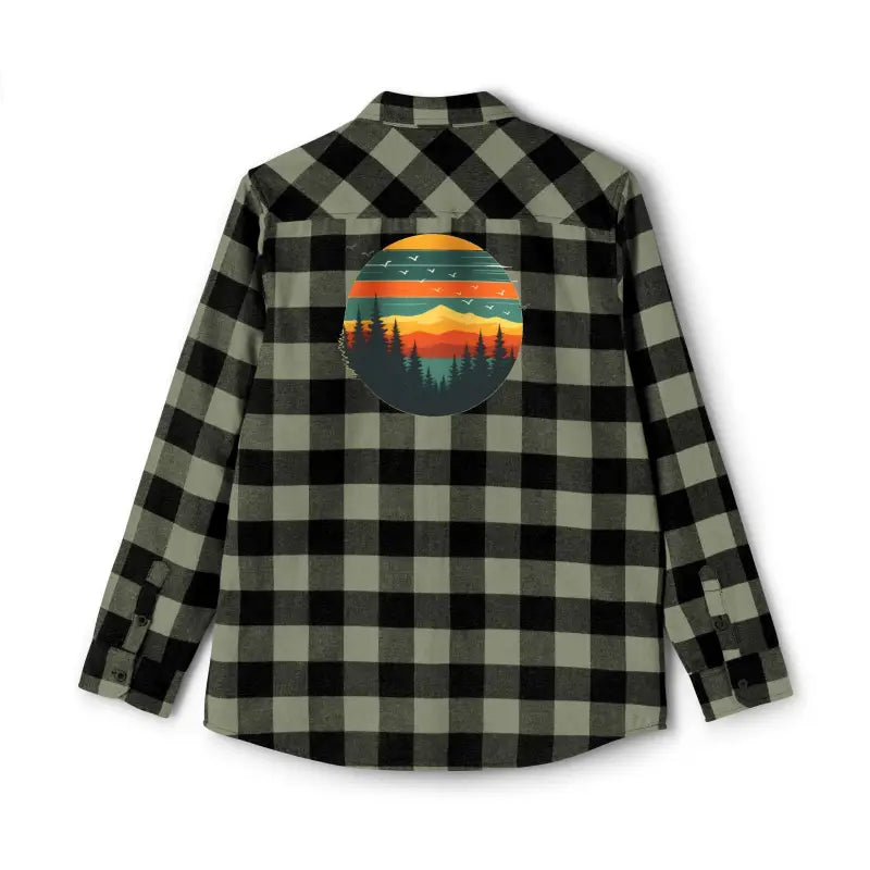 Dreamy forest green and charcoal stripes blend effortlessly with earthy reds and amber hues in this unisex flannel, its classic cut and nature-inspired back graphic inviting you to explore hidden trails or coffee shop corners with equal confidence.
