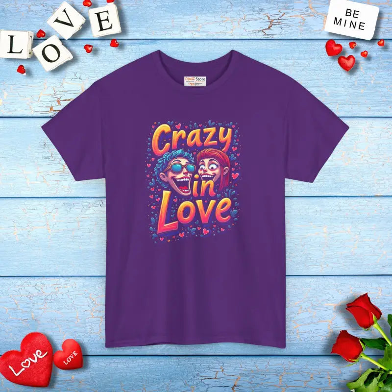 Shout it from the rooftops! Crazy in love this Valentine's Day? Show it off with our Crazy in Love Valentine's Day Tee! This tee is not just clothing; its a statement. Made of super-soft, 100% heavy cotton, its the ultimate blend of comfort and style. Imagine sinking into its luxurious softness while rocking a look that screams romance. This tee is your secret weapon for a memorable Valentine's Day.