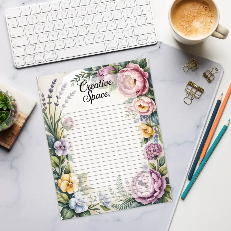 Transform your ideas into art with a dynamic creative space that fuels endless inspiration. Let your thoughts flow on ruled pages adorned with a chic flower border that speaks to your style and women’s fashion flair.