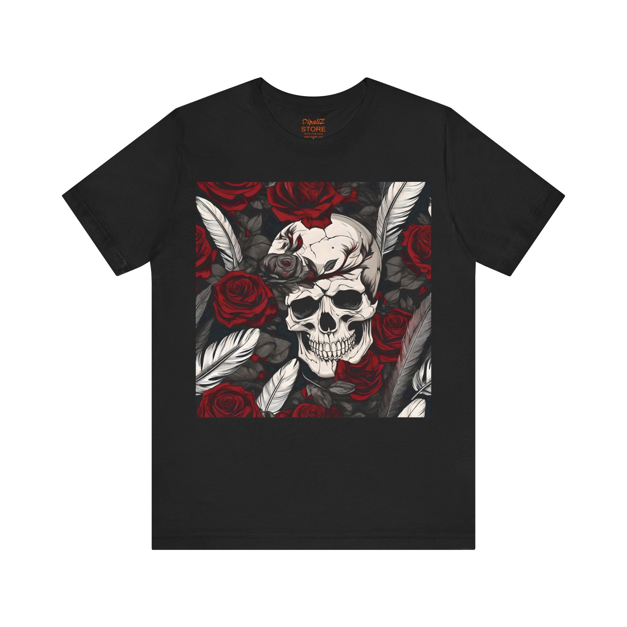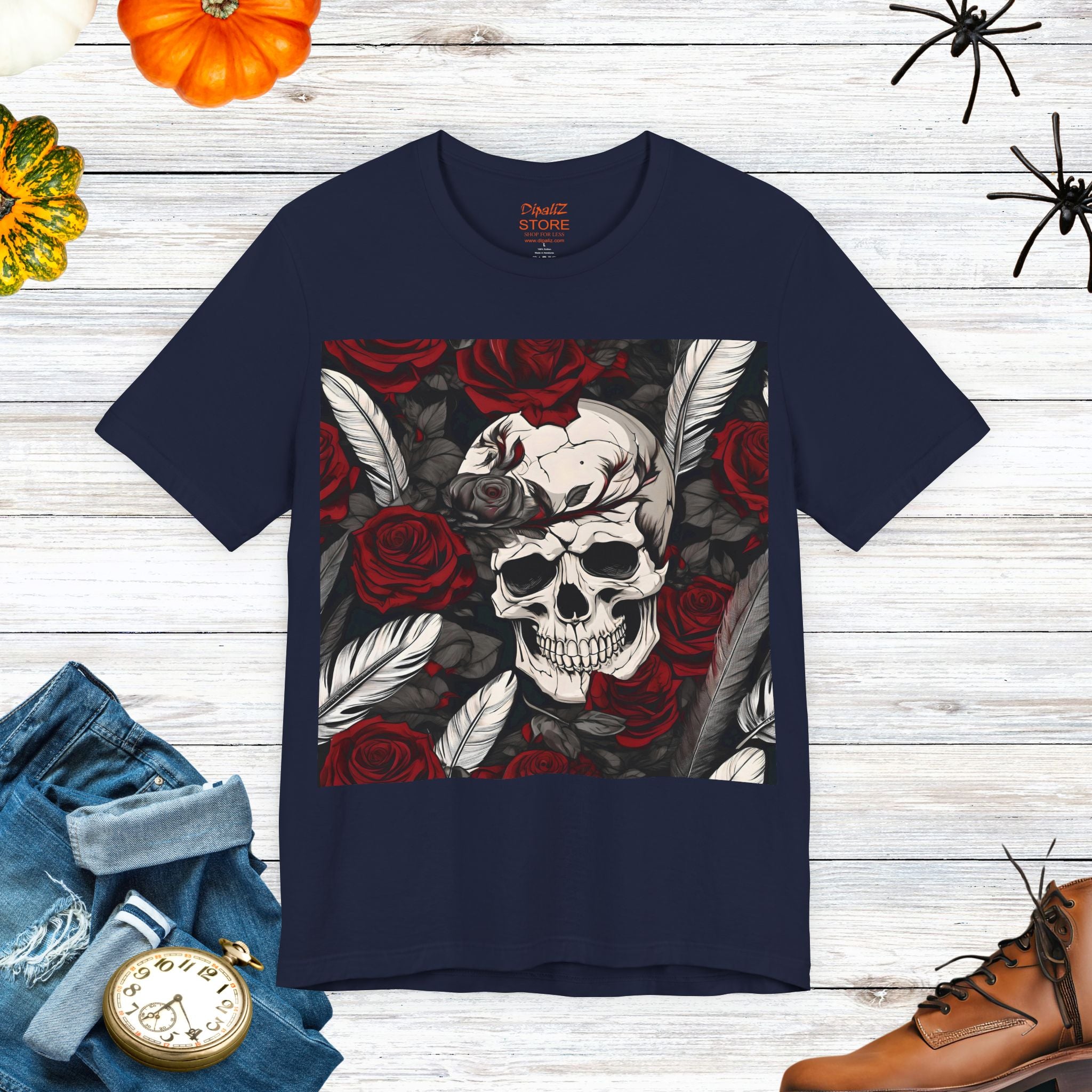 Creepy Skull, Roses and feathers for Halloween, Unisex Jersey Short Sleeve Tee