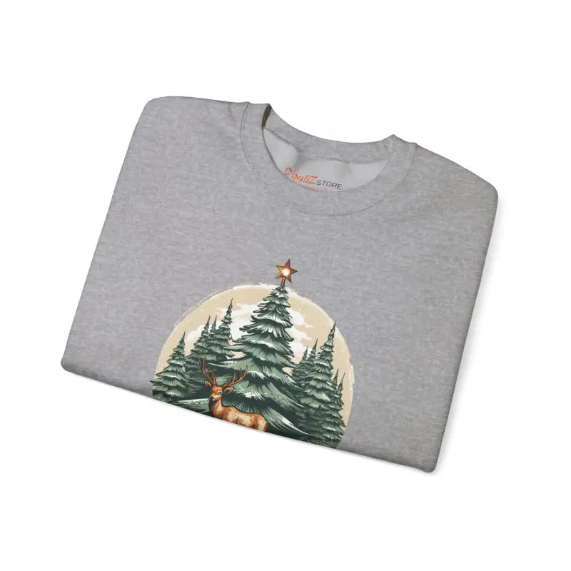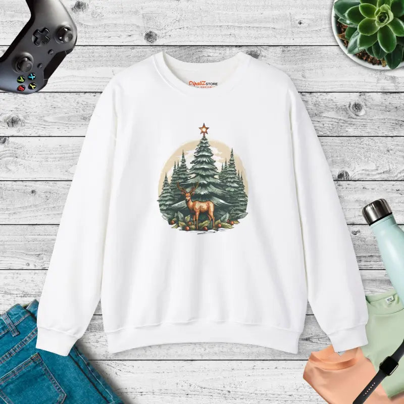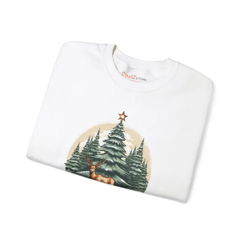 Feel the magic of the holidays come alive with a delightful reindeer design that's sure to sprinkle cheer wherever you go. The unisex appeal makes it a must-have addition to any wardrobe, ensuring everyone can bask in its cozy embrace. Crafted from a perfect blend of 50% cotton and 50% polyester, this crewneck sweatshirt hugs you like a warm, welcoming breeze on a chilly winter day. Say goodbye to saggy collars and hello to the ribbed knit collar that bounces back even after countless washes. Feel free to twirl, dance, and celebrate without worrying about pesky side seams itching or sticking!