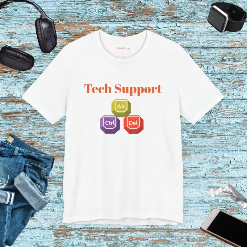 Ctrl+Alt+Del Tech Support Tee — Classic Unisex Jersey Short Sleeve. This lightweight jersey tee feels like a long-time companion from the first wear. The soft Airlume combed and ringspun cotton drapes cleanly across the shoulders and settles into a comfortable retail fit that works for everyday wear and layered looks. Subtle details — ribbed knit collar, shoulder tape and dual side seams — keep the silhouette true and resilient after repeated washes. Sleeve and neck graphics are rendered with high-detail printing for crisp, lasting imagery, while a tear-away label keeps irritation away. Wear it to coding sprints, tech meetups, or late-night debugging sessions and let the shirt quietly speak your language: practical, refined, and built to last.