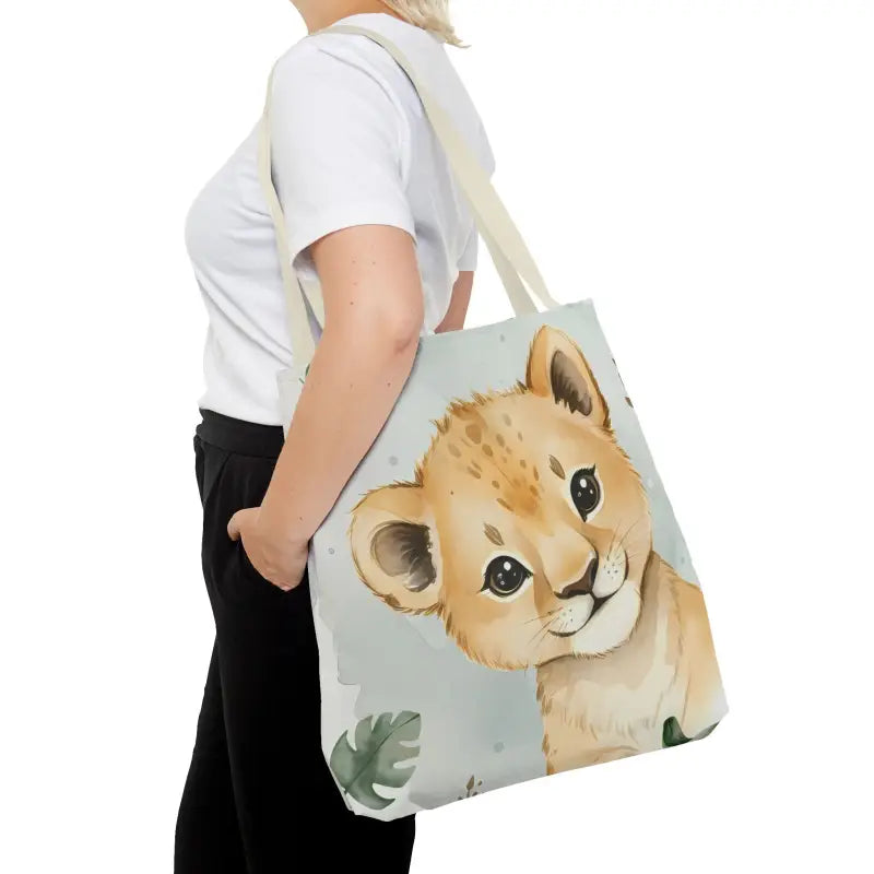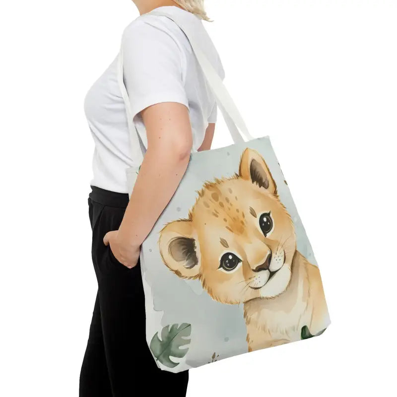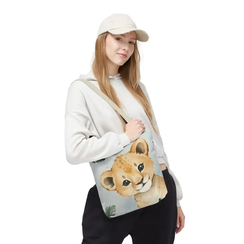 - Double-stitched handles with customizable color options allow you to personalize your cute baby lion tote to match your wardrobe preferences while ensuring comfortable weight distribution across your shoulder