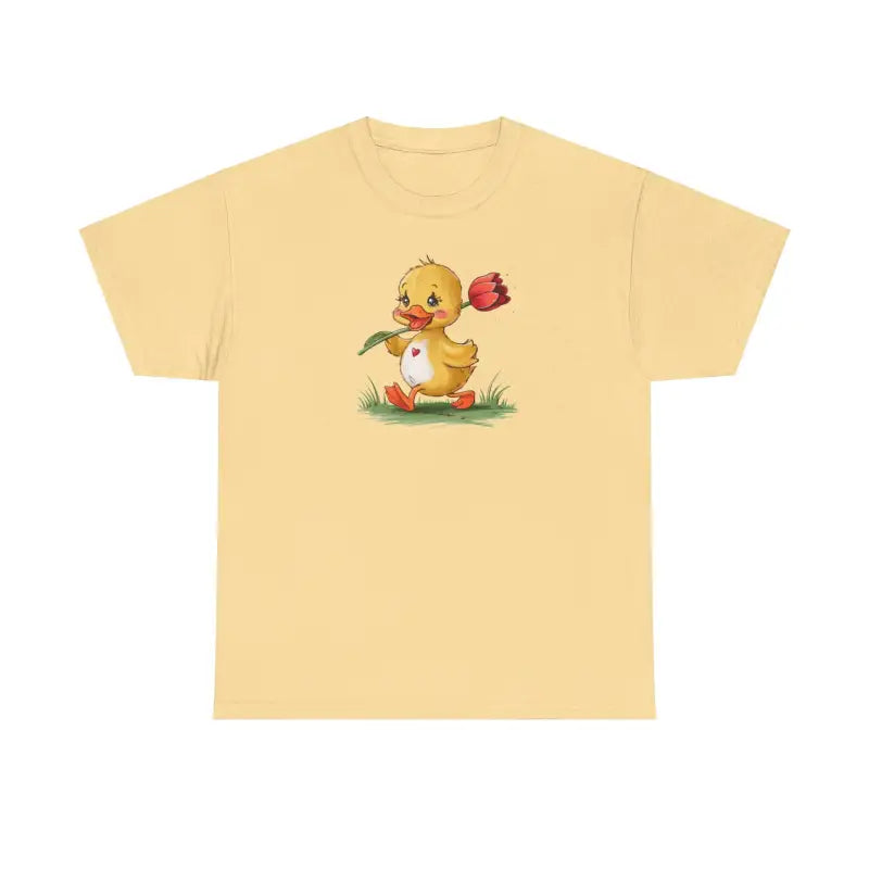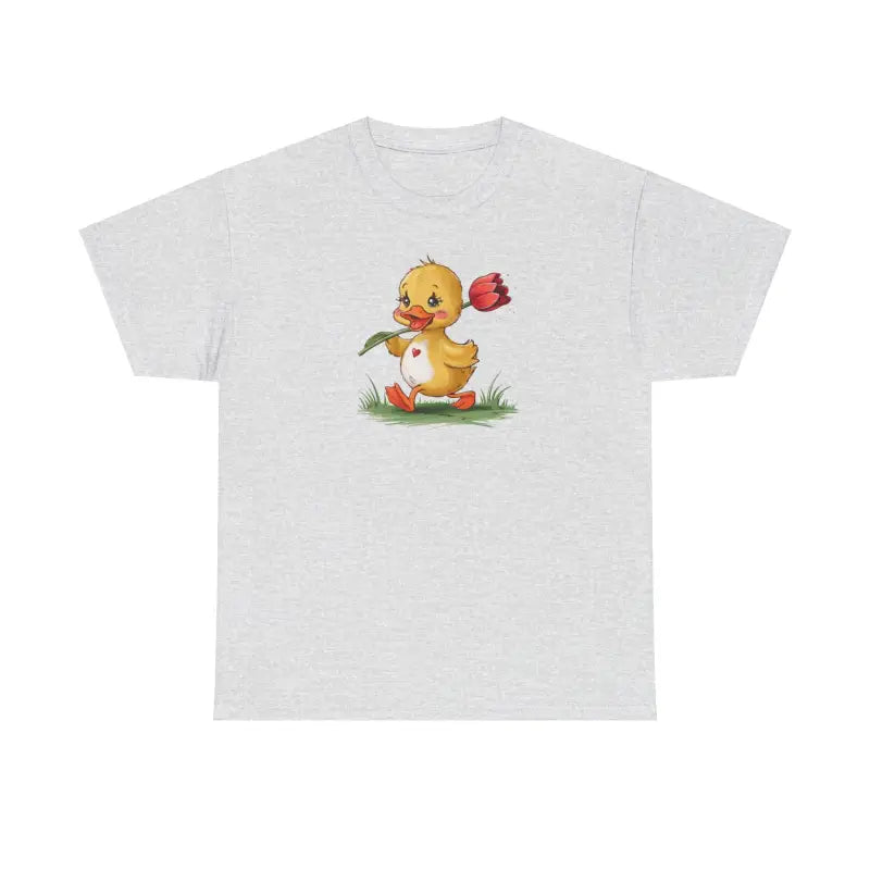 Revitalize your wardrobe with the vibrant and versatile Unisex Heavy Cotton Tee featuring a delightful duckling with a tulip design. This tee isn't just an item of clothing; it's a statement piece that adds a pop of style and charm to any outfit. Crafted for those who love to express their personality through fashion, this tee is not only about looks—it's engineered for supreme comfort and durability.
