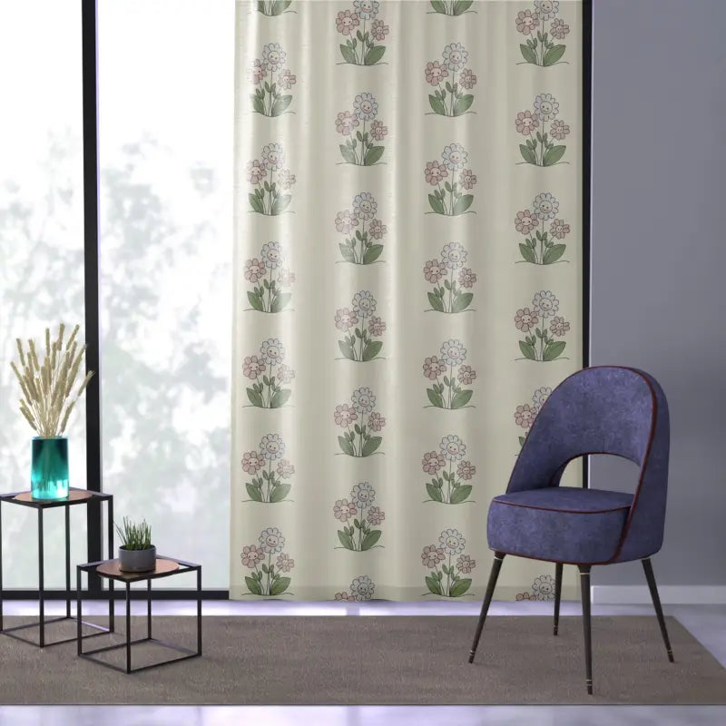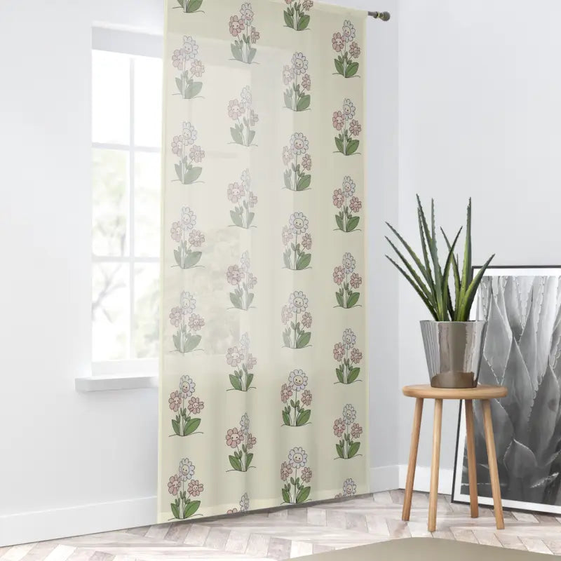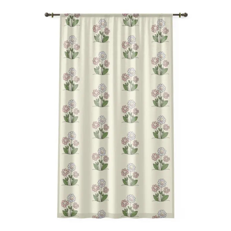 Cute flowers, Window Curtain. Home decor - the one factor that can make a house truly feel like home. Add character to any type of surroundings with these beautiful curtains. Measuring in at 50" by 84", these curtains can decorate your window with unique artwork. Made 100% with polyester, they're somewhat transparent so as to soften outside light and add elegance to the room.
