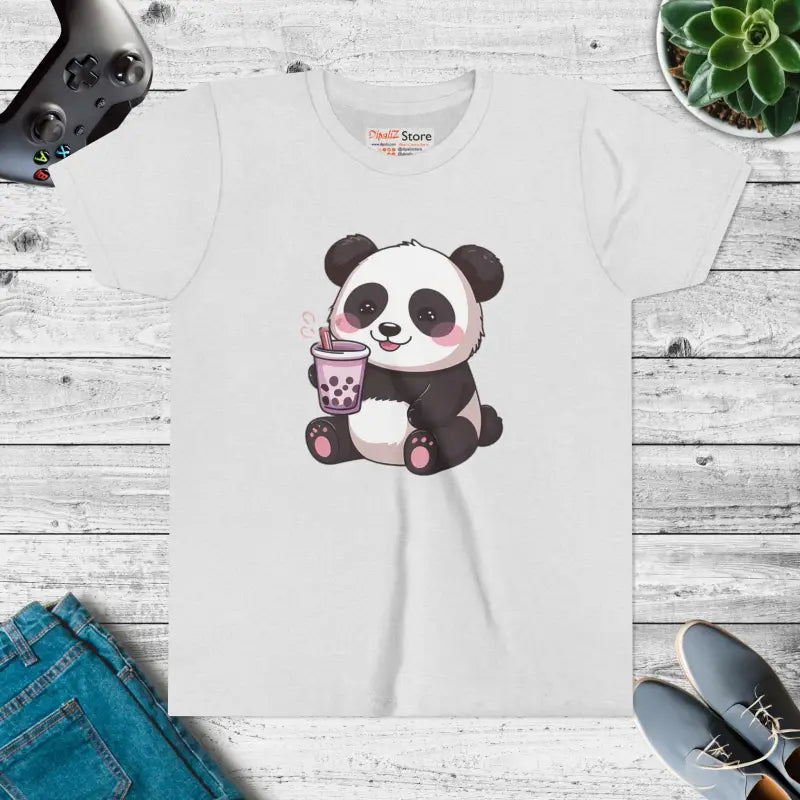 Introducing our adorable tea youth tee that is sure to become a favorite in every kid's wardrobe. This cute panda bubble design features an enchanting panda enjoying its favorite drink, making it the perfect outfit for animal lovers and those who adore panda bubble tea graphics. Crafted with care from premium, ultra-soft fabric, this bubble tea youth tee offers unbeatable comfort for playdates, outings, or cuddly weekends at home.