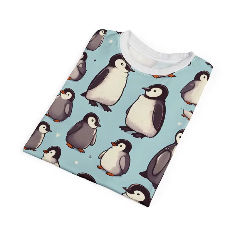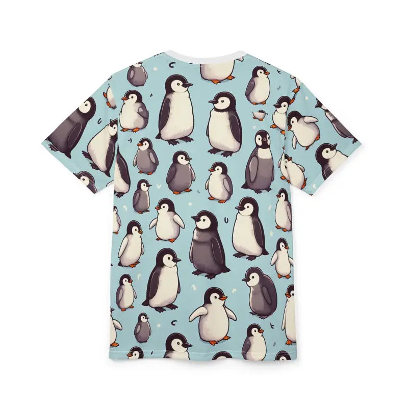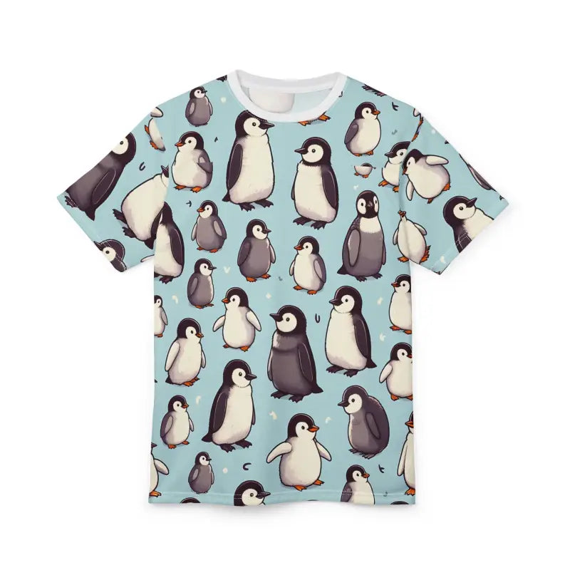 Bursting with fun, this cute penguin unisex T-shirt features energetic all-over prints of super-cute penguin characters, surrounded by bold colors that pop and stand out.