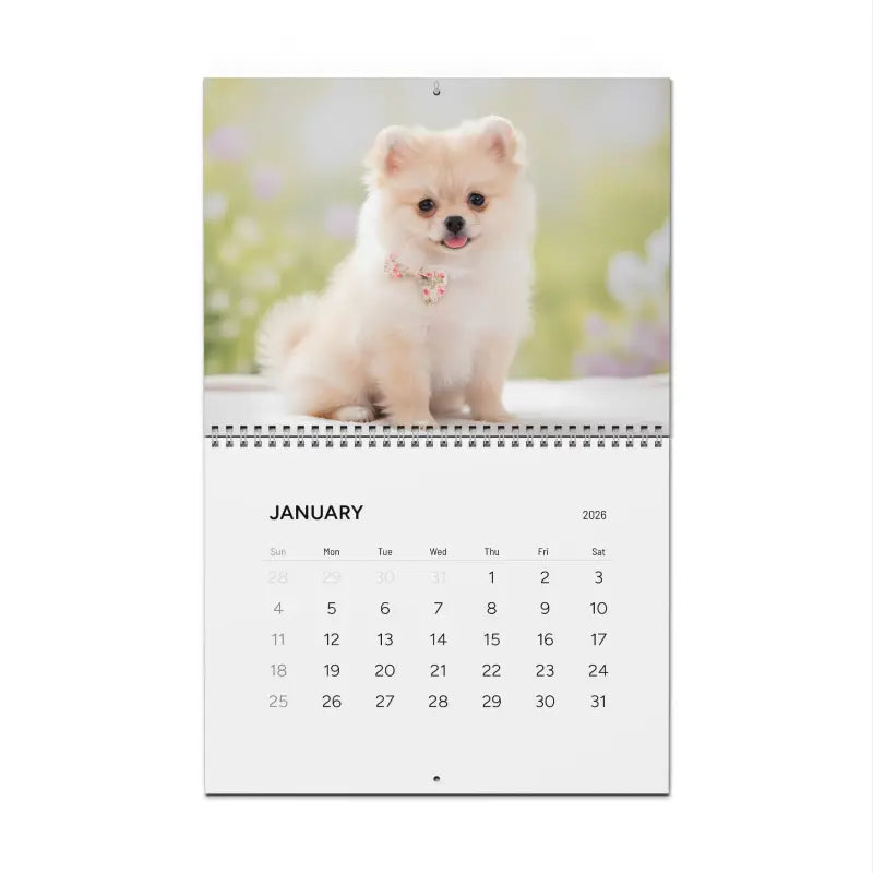Bring a year of joyful moments to your wall with this 2026 wall calendar. Each month features a large, vibrant photo that brightens any room while the matte grid pages invite notes, plans, and memory-keeping without smudges. Durable wire coil binding and a centered hanging hole make it easy to flip months and display wherever you need a cheerful focal point—home desk, kitchen, or office. Choose between a compact matte 11" x 8.5" or a larger glossy 14" x 11.5" format to suit your space. Thoughtful touches like thick premium paper, writable month grids, and a small QR code on the back add function to the charm. Product features - Wire coil binding with 4mm centered hanging hole for easy display and page flipping - Vibrant, large images printed with bright, crisp colors - High-quality, thick paper stock for a premium feel - Matte writable month grids to allow pen or permanent marker without smudging - Two sizes: 11" x 8.5" (matte) and 14" x 11.5" (glossy)