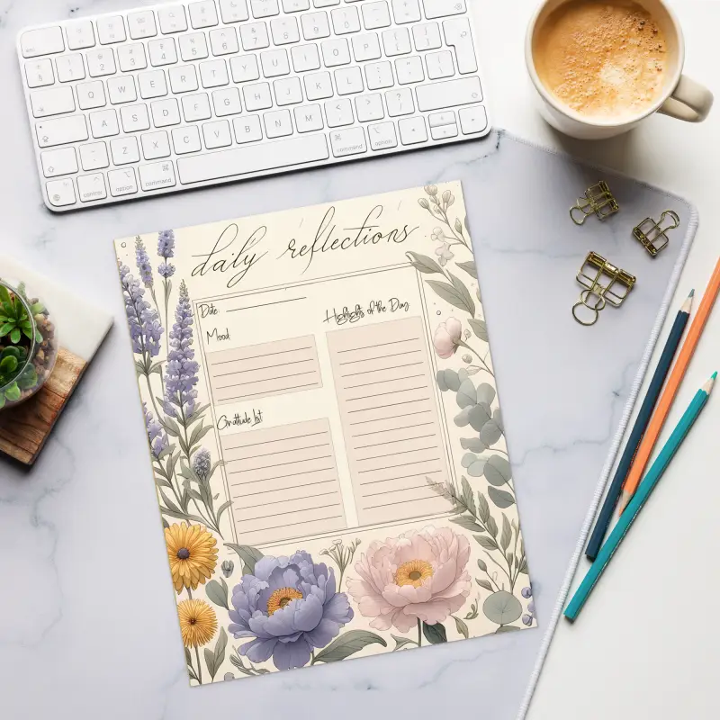Print: Eye-catching floral print on every page to inspire your daily reflections.