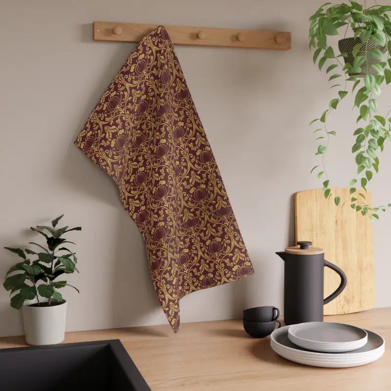 Feel the warmth of deep auburn and muted gold as this tea towel from dipaliz wraps up your kitchen moments in heirloom flair. Imagine unfolding it beneath a steaming loaf or draping it over your rack while the scent of fresh bread fills the air.