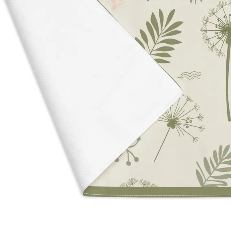 Print: Dandelion and leaves design brings a fresh and playful vibe to your table decor.