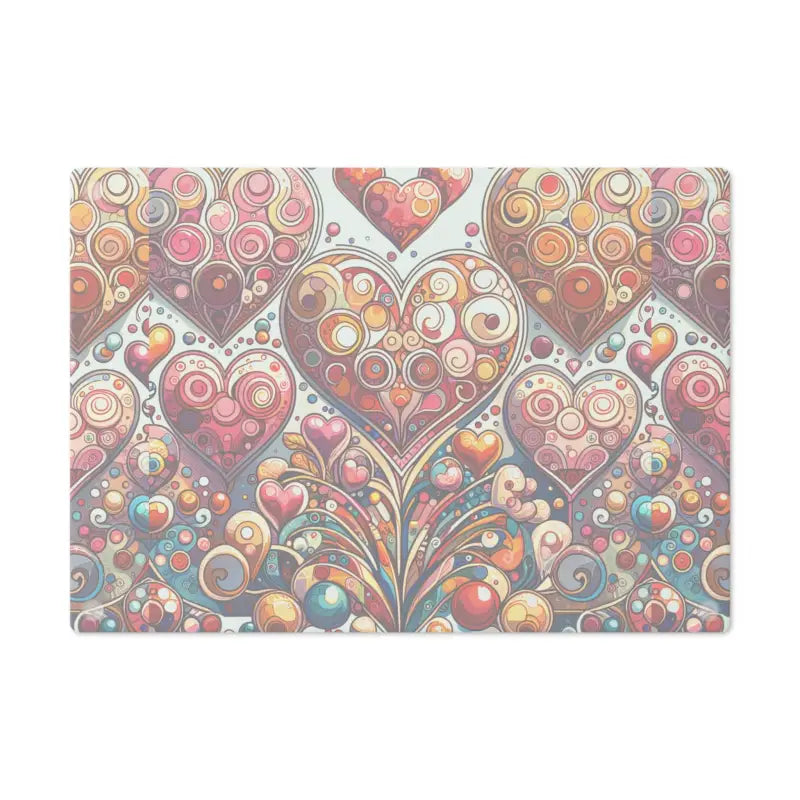 - Unique tempered glass cutting board with a decorative hearts print adds character and charm to any kitchen decor