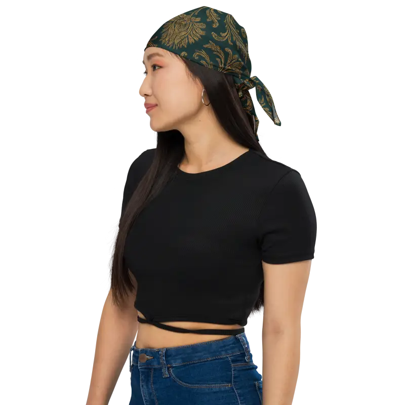 Feel the buzz of the streets as you wrap this vibrant all-over print bandana around your neck or tie it across your forehead, instantly dialing up your cool factor with its bold navy blue swag. Picture yourself rocking that pop of deep ocean hue, the recycled fibers softly brushing against your skin while you turn heads.
