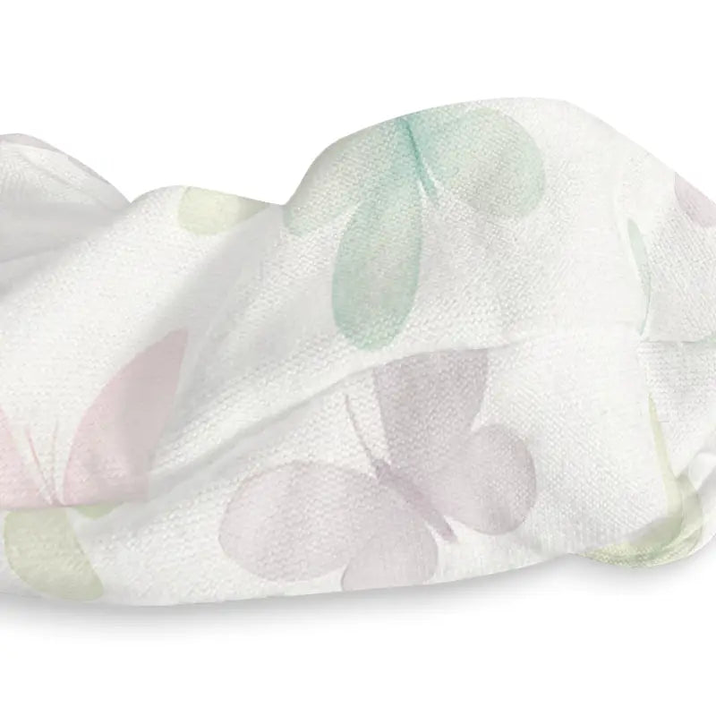 Soft pastel pink petals and golden honey wings unite in a dreamy swirl, instantly turning any hairstyle into a fluttering fairytale with this butterfly scrunchie. Feel the playful elegance as soft fabric wraps around your hair, whispering comfort and style.