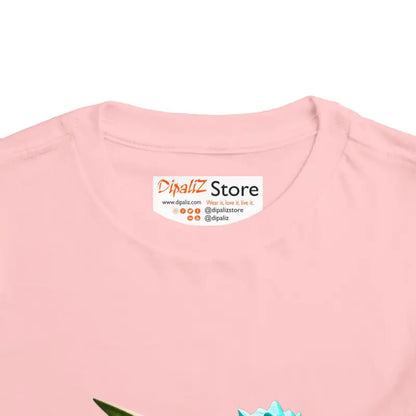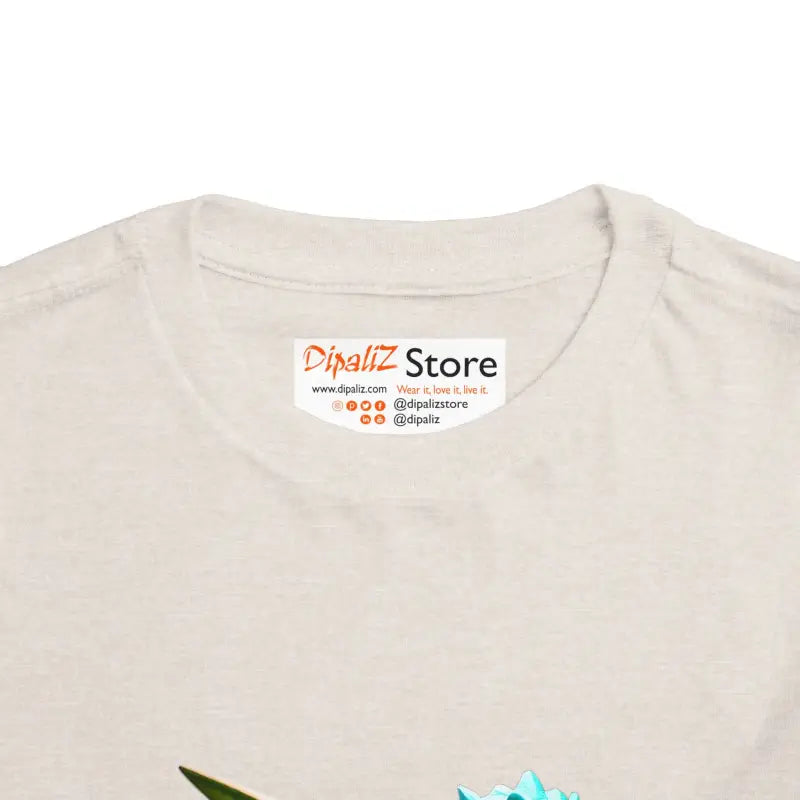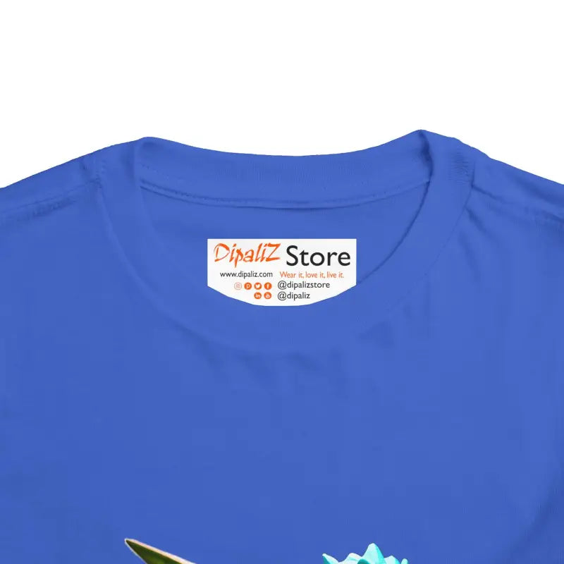 The tee's design is nothing short of enchanting. Imagine an adorable blue dinosaur prancing on a rich teal background, inviting endless giggles and storytelling. It's a visual treat that keeps your toddler looking cool and cute, making it the talk of any playdate.