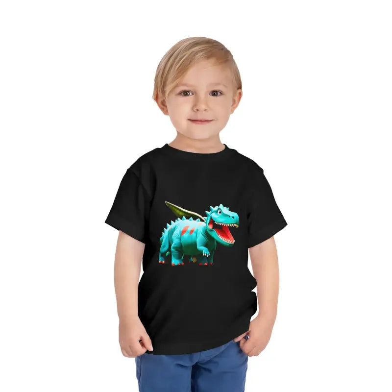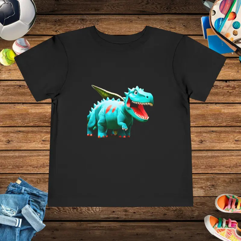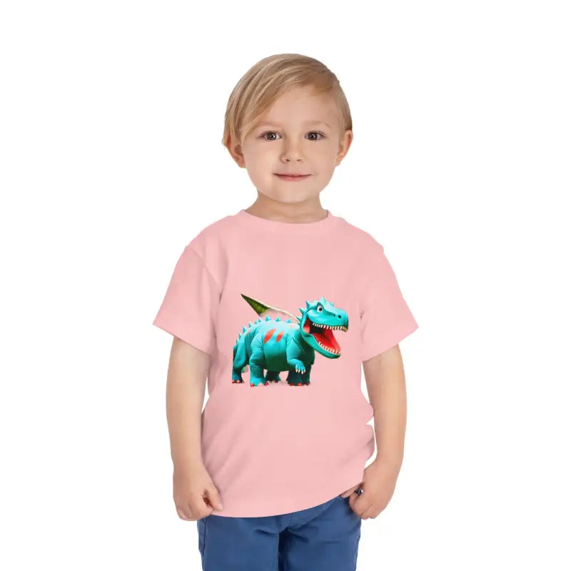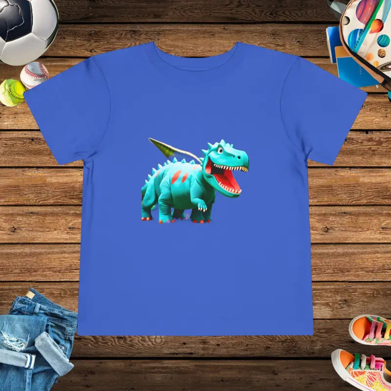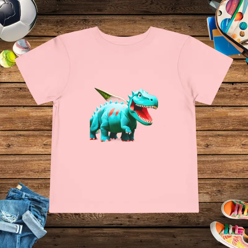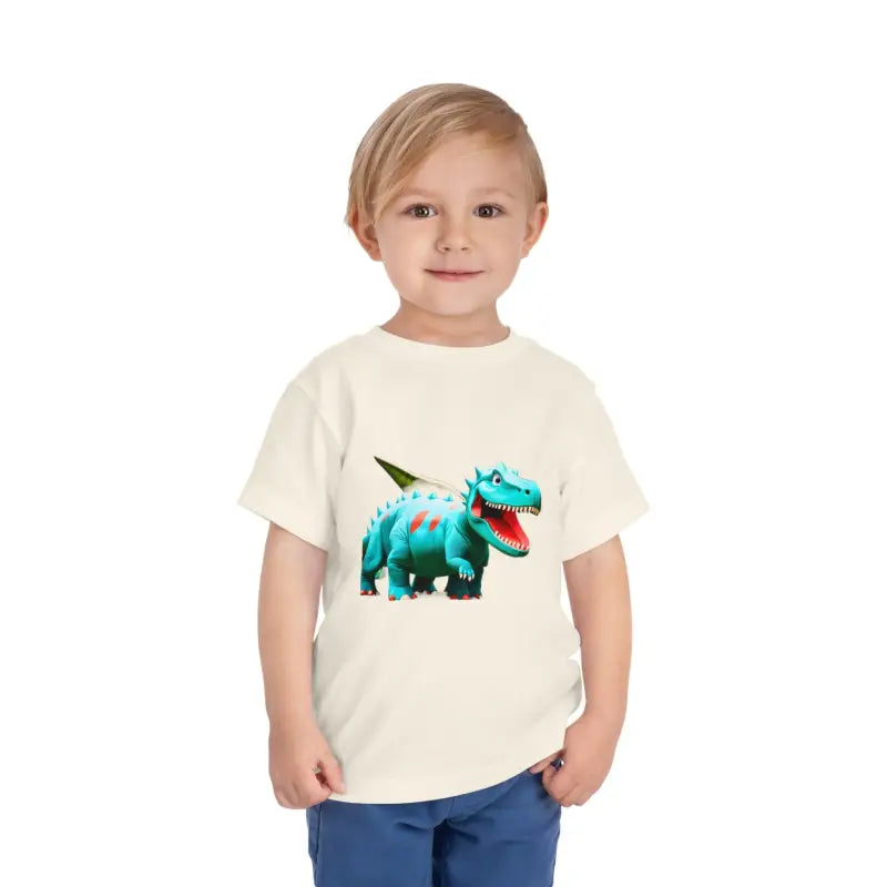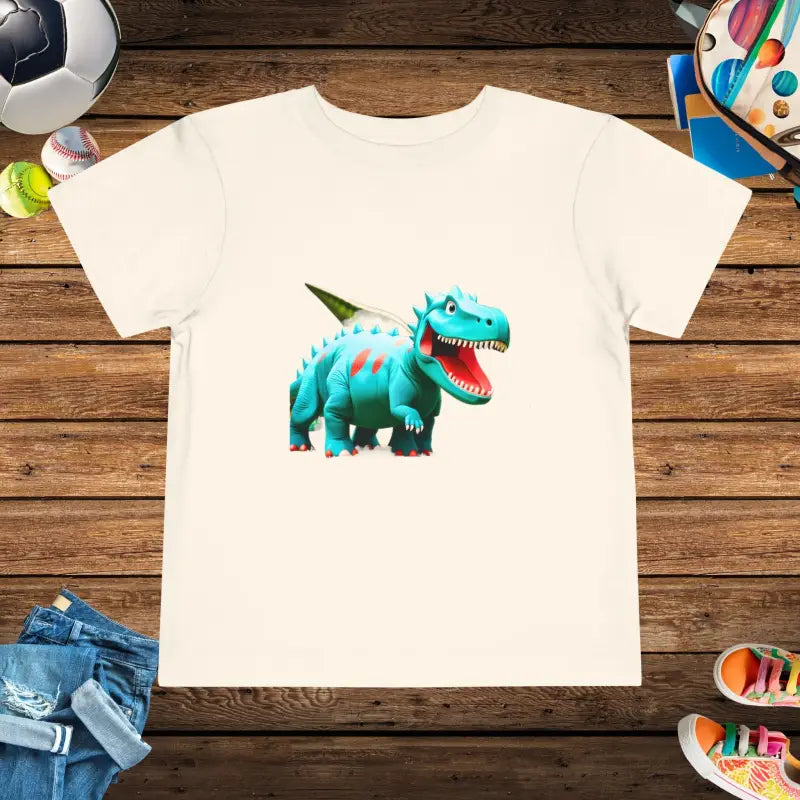Introducing the ultimate wardrobe essential for your little adventurer, this Teal Dinosaur Toddler T-shirt boasts a classic fit perfect for any playful outing. This dynamic tee captures youthful spirit and curiosity with its vibrant design and soft fabric, making it a must-have for every energetic toddler out there.