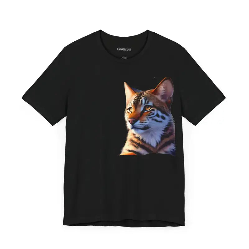 A cute cat, Unisex Jersey Short Sleeve Tee. This classic unisex jersey short sleeve tee fits like a well-loved favorite. Soft cotton and quality print make users fall in love with it over and over again. These t-shirts have-ribbed knit collars to bolster shaping. The shoulders have taping for better fit over time. Dual side seams hold the garment's shape for longer.