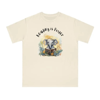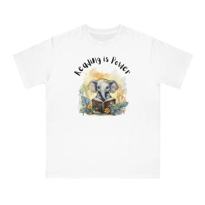 Love reading and cute animals? Show off both with this super comfy organic classic t shirt featuring the cutest elephant reading a book—let your style speak up for the joy of reading and living life your way!