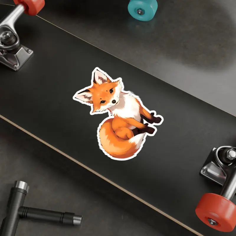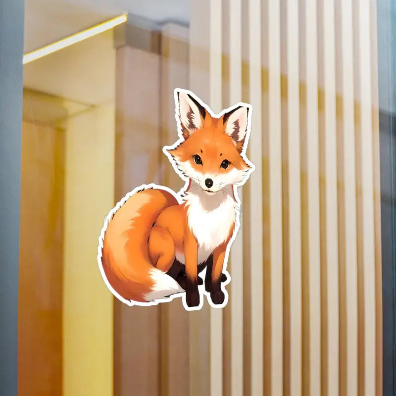 Print: Foxy Decals featuring an eye-catching cute red fox design with a sleek satin finish and a refined white border that elevates any surface.