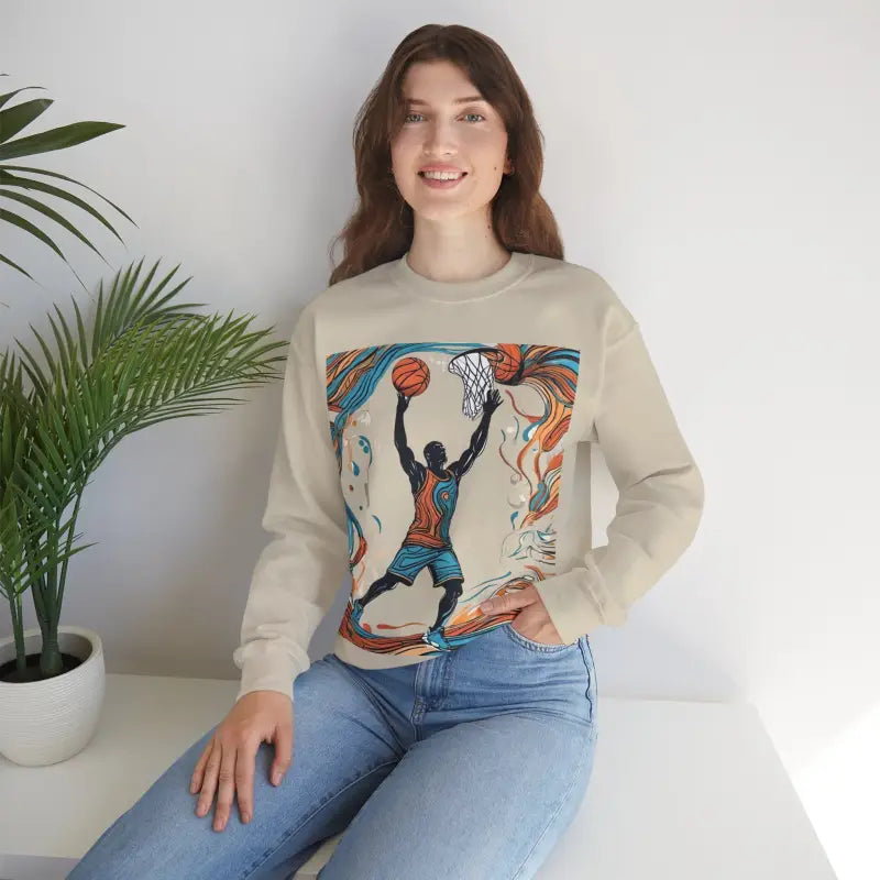 A man playing American football, Unisex Heavy Blend™ Crewneck Sweatshirt. Ideal for any situation, a unisex heavy blend crewneck sweatshirt is pure comfort. These garments are made from polyester and cotton. This combination helps designs come out looking fresh and beautiful. The collar is ribbed knit, so it retains its shape even after washing. There are no itchy side seams on these sweaters.