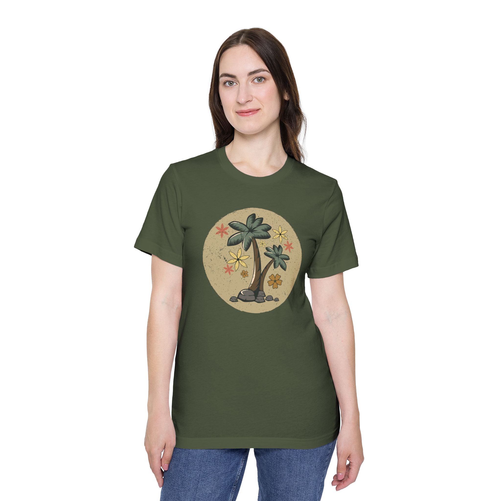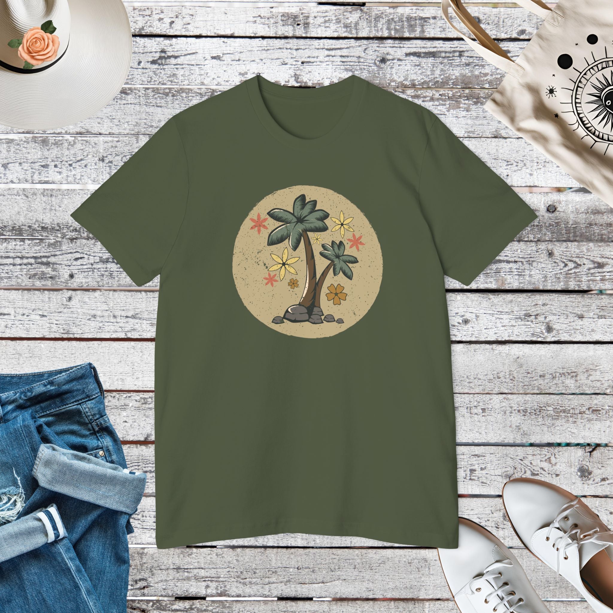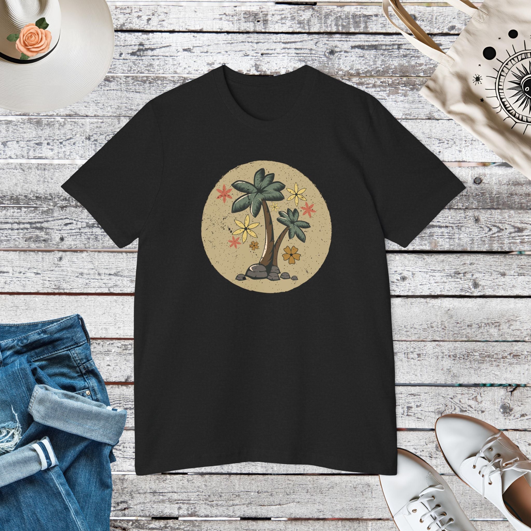 Palm trees, Vacation vibe, Unisex Jersey Short Sleeve Tee. This classic unisex jersey short sleeve tee fits like a well-loved favorite. Soft cotton and quality print make users fall in love with it over and over again. These t-shirts have-ribbed knit collars to bolster shaping. The shoulders are tapered for a better fit over time. Dual side seams hold the garment's shape for longer.