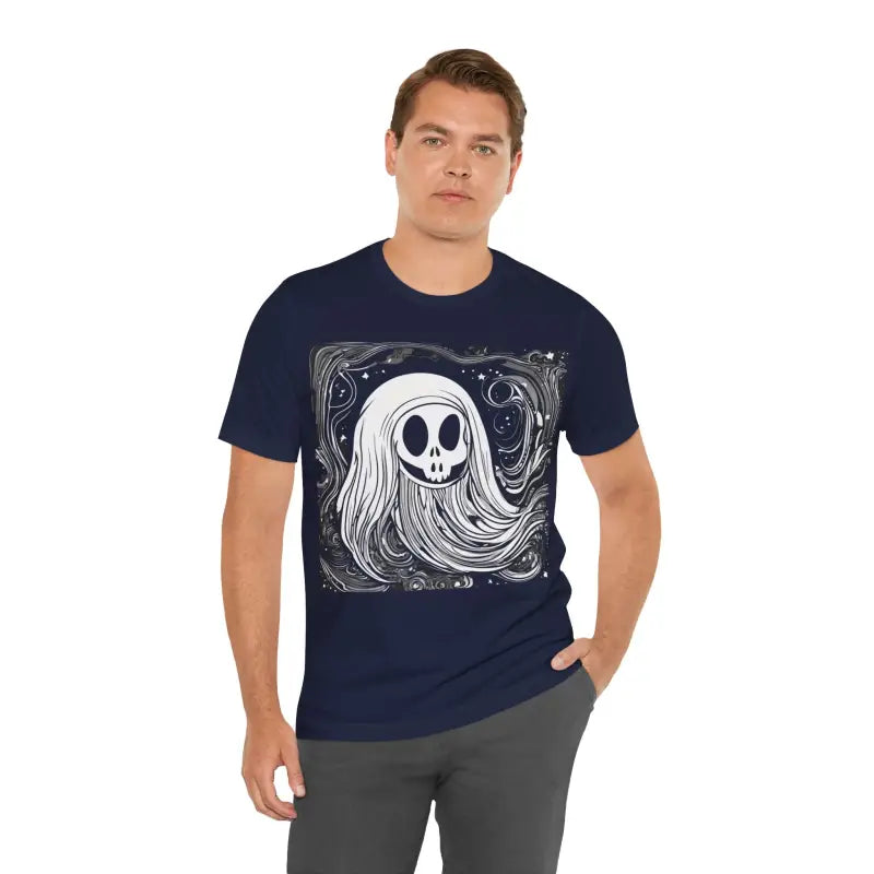 This stellar short sleeve tee is ideal for a myriad of occasions—whether you're spicing up your social gatherings, rocking it during a Halloween party, or easing into your weekend routine with unmatched style. Its unique blend of comfort and spookiness sets it apart from generic tee designs you'll find elsewhere. Beyond just another basic tee, the Ghost Tee strikes the perfect balance between fashionable allure and cozy practicality.