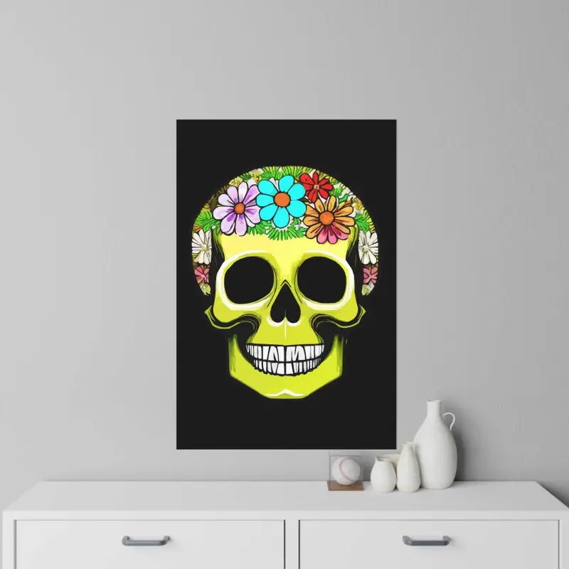 Print: An unforgettable combination of bold skull elements and delicate floral accents brings a fusion of strength and beauty to any wall in your home.