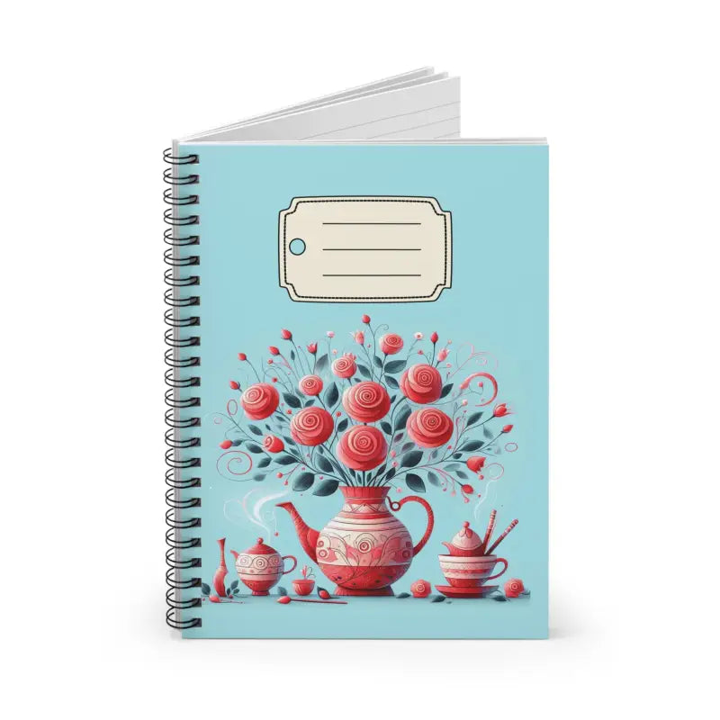 Print: Vibrant red roses artfully printed on spiral-bound, ruled line pages, merging creative inspiration with modern Women's Fashion style.