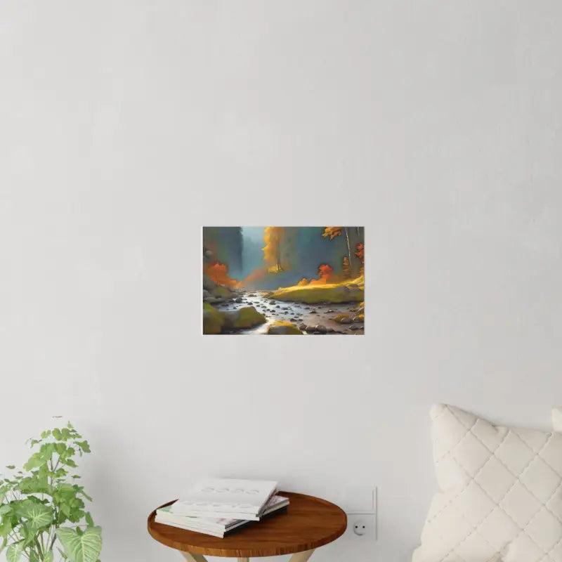 Print: Trendy prints inspired by modern women’s fashion along with vibrant river in the woods poster aesthetics, designed to add depth and character.