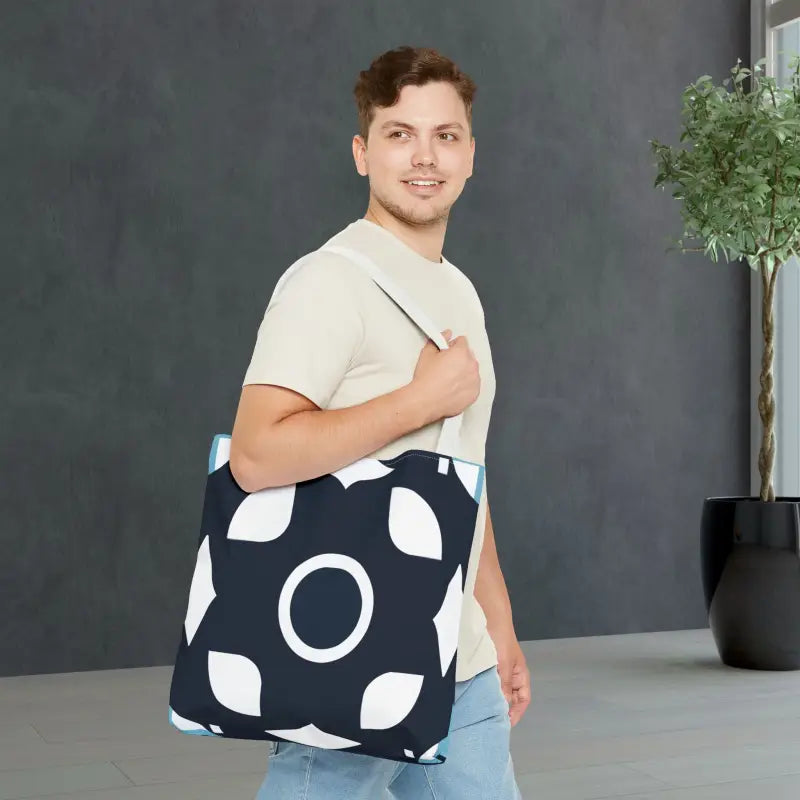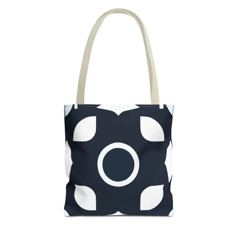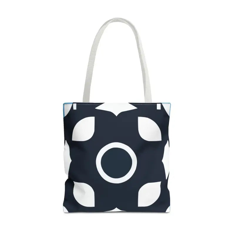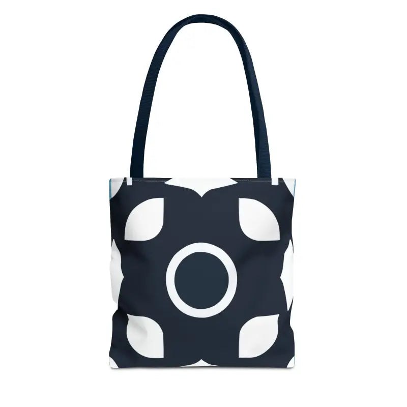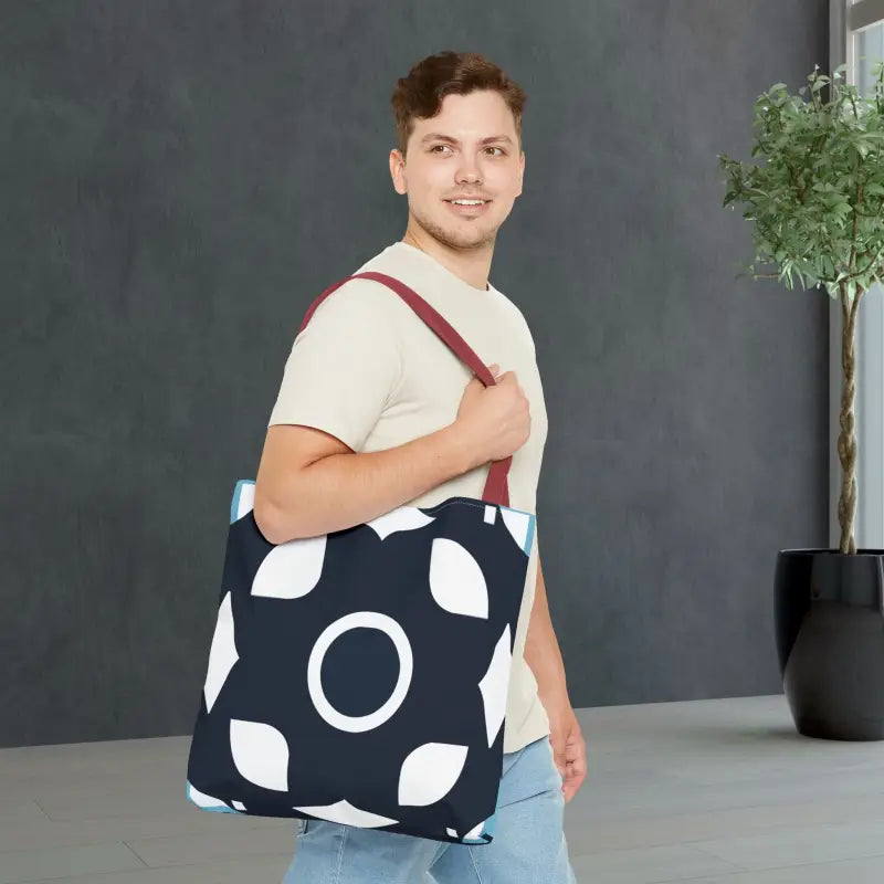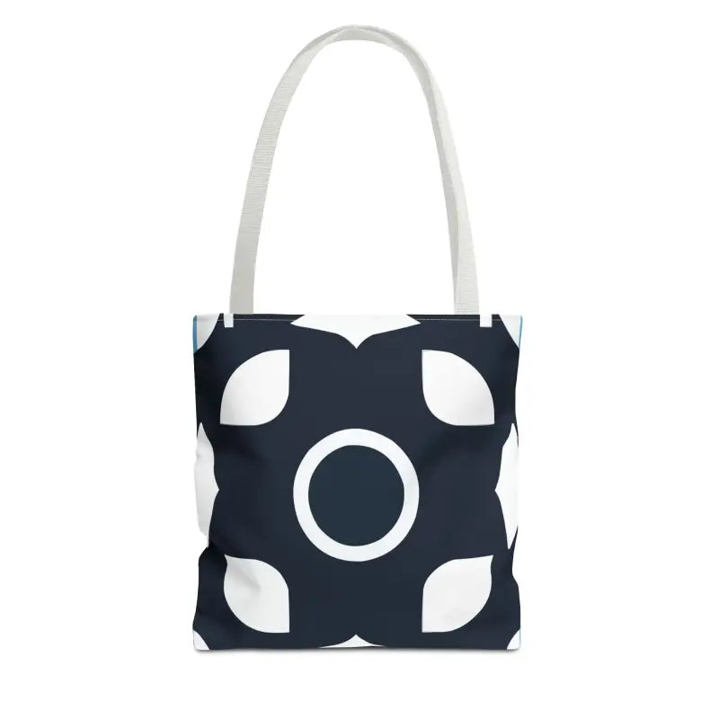 The tote bag is made of 100% polyester, a medium-weight fabric (6.49 oz/yd²) that is both durable and perfect for everyday use.