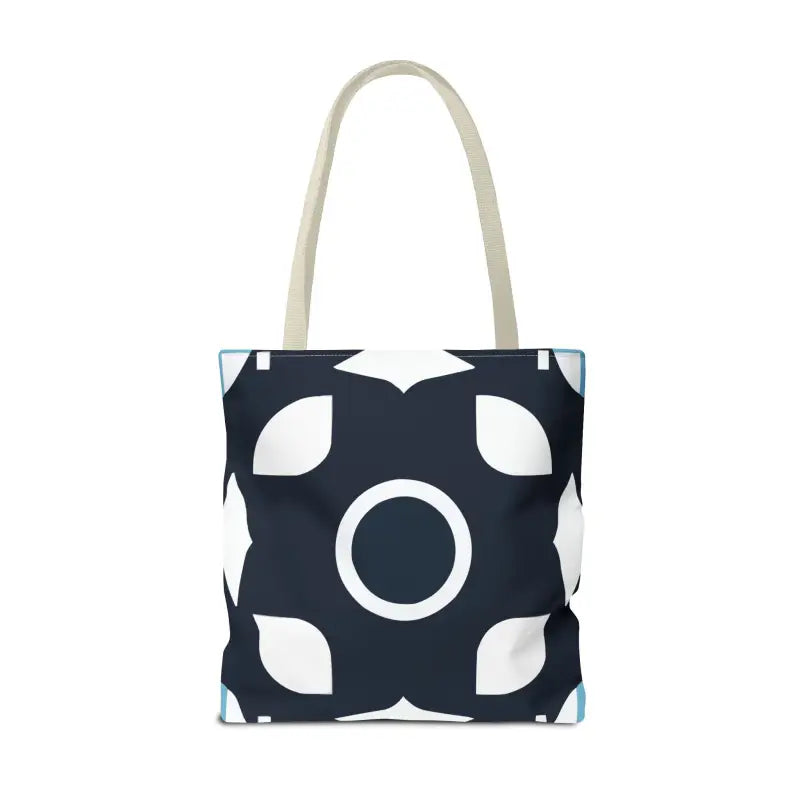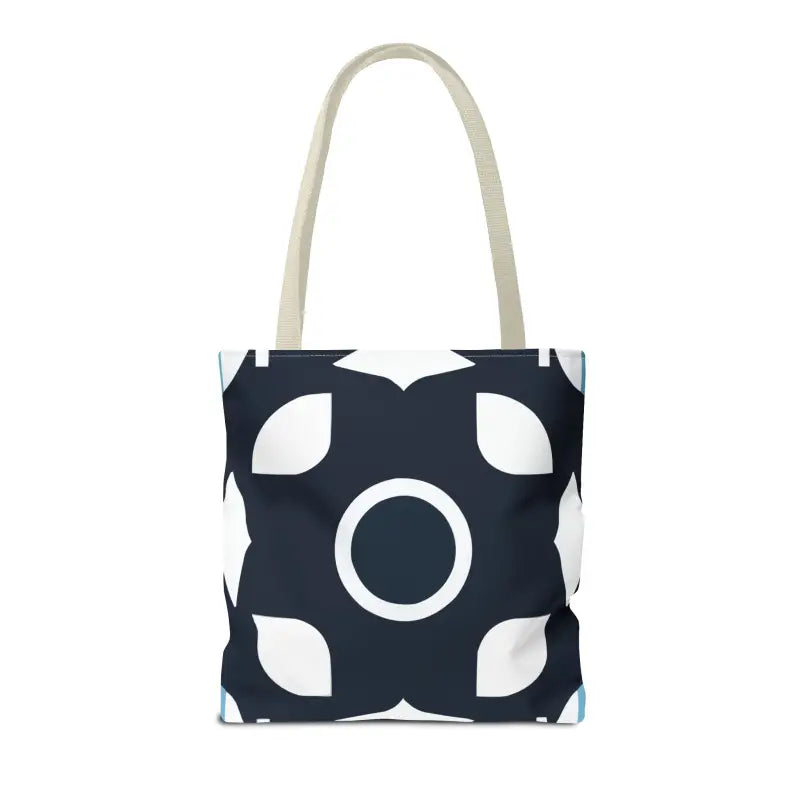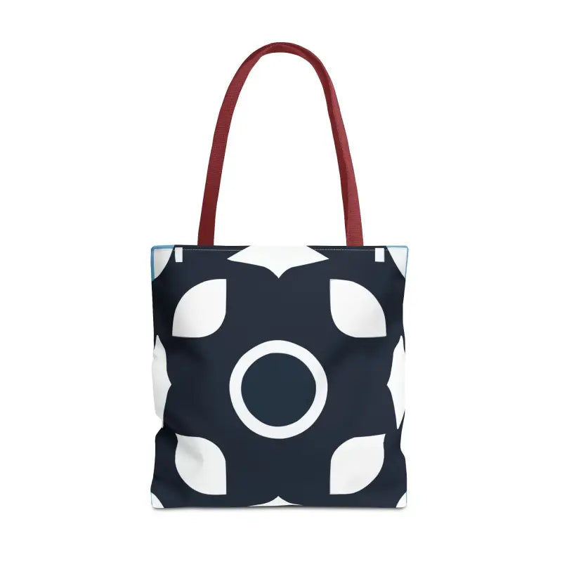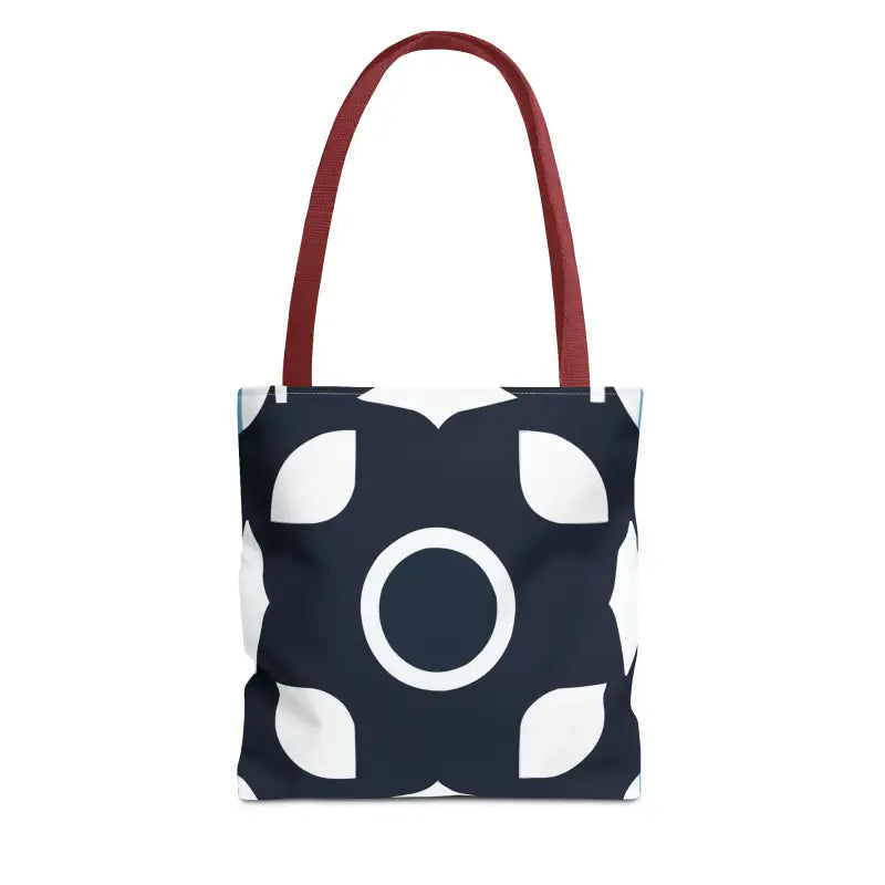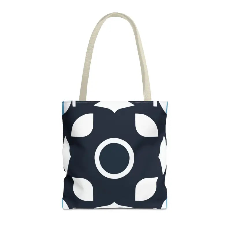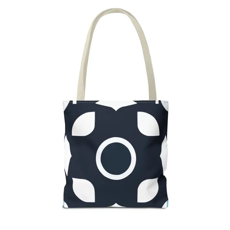 The tote bag is made of 100% polyester, a medium-weight fabric (6.49 oz/yd²) that is both durable and perfect for everyday use.
