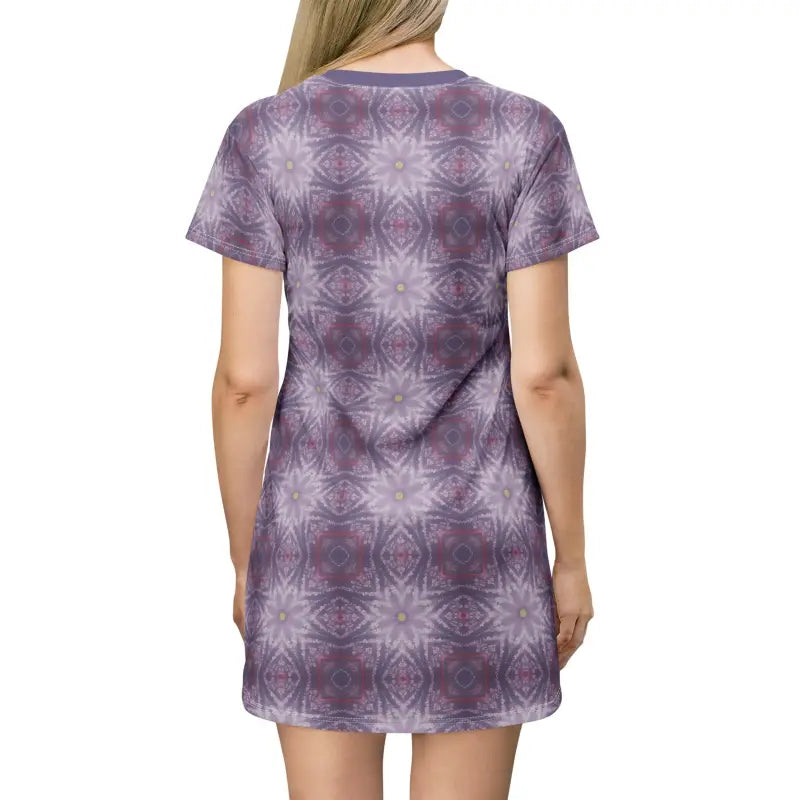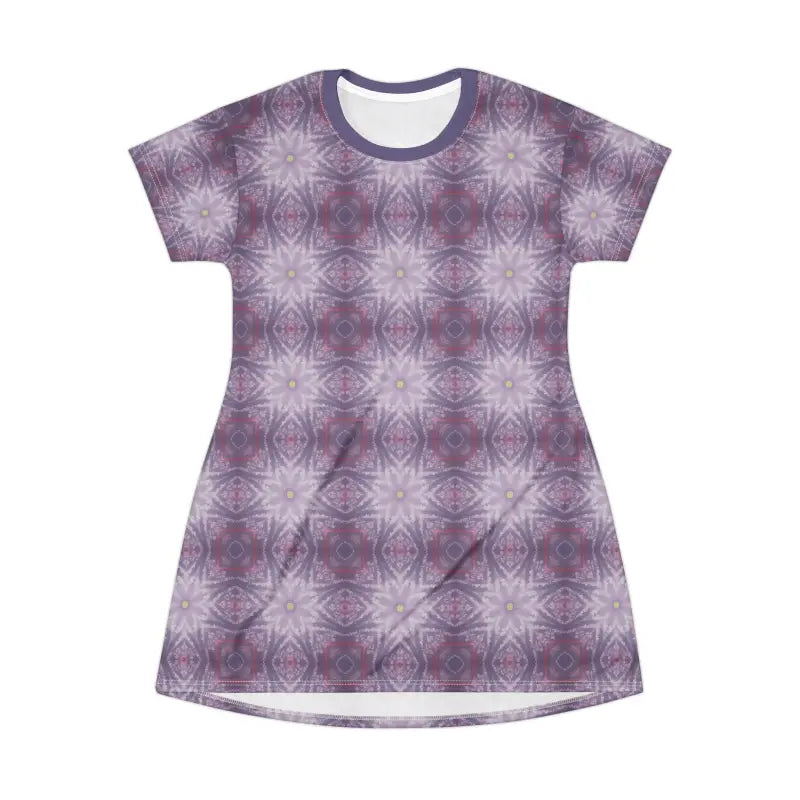 Print: Radiant abstract pattern with a dazzling purple pattern twist that makes this shirt dress stand out as your favorite print t shirt alternative.