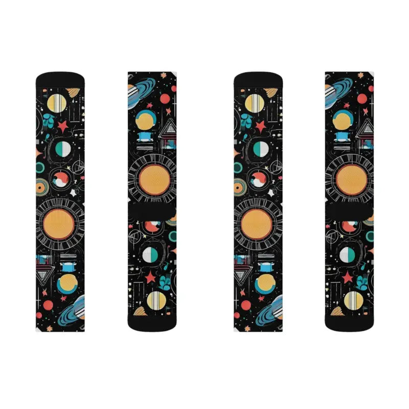 Step into the realm of bold style and cosmic adventure with these sublimation socks that perfectly fuse abstract planets themes with everyday comfort—your passport to a universe where fashion meets function. Grab your pair now and elevate your wardrobe to stellar new heights!