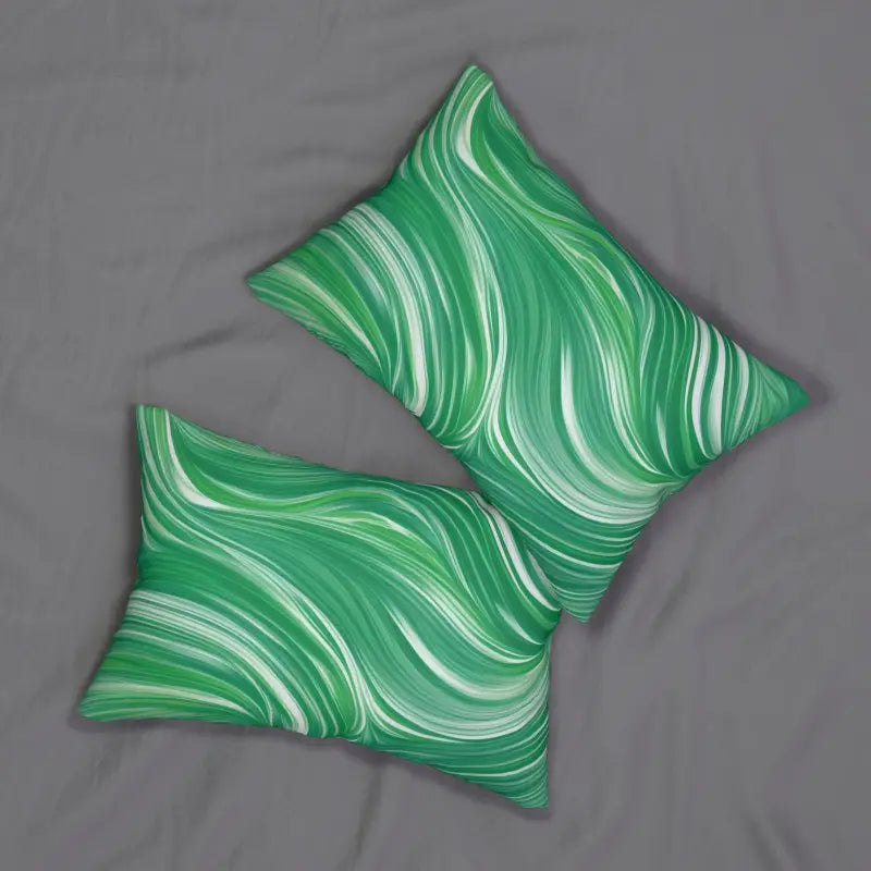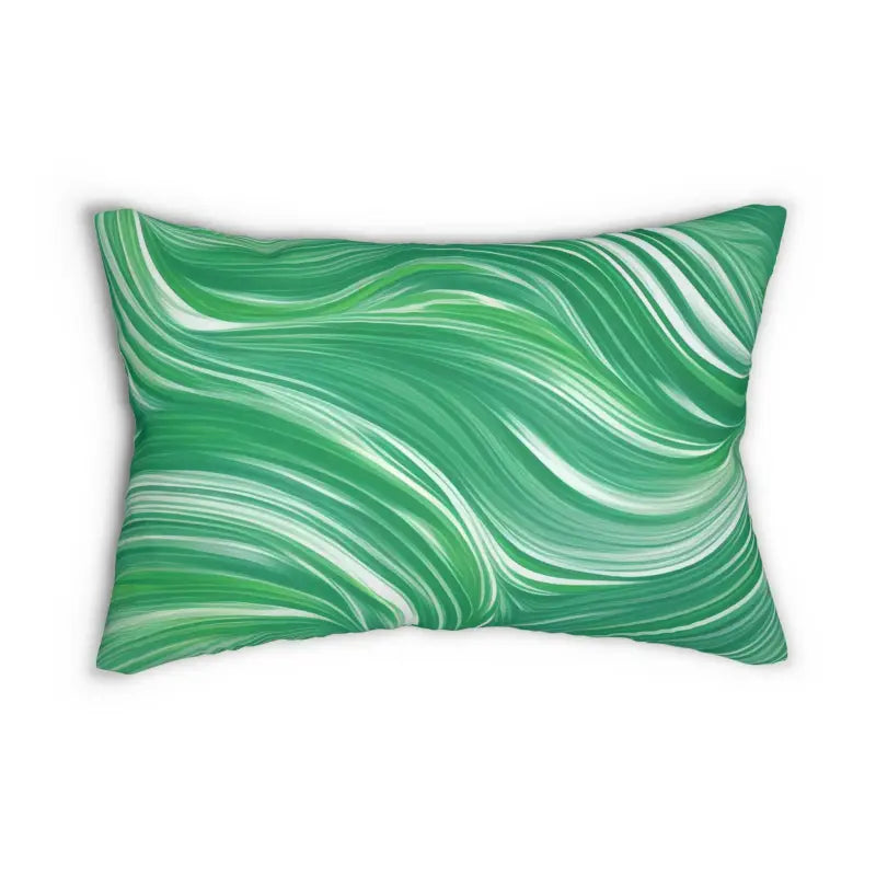 Abstract wavy pattern on green, Spun Polyester Lumbar Pillow. Add this beautiful spun-polyester lumbar pillow to your home decor pieces today. It comes with a stuffing pillow included. The casing is made of a spun polyester fabric that is inherently mildew and water-resistant. You can place your design on both sides or have a different design on each side. It has a hidden beige zipper to maintain a finished and stylish look.